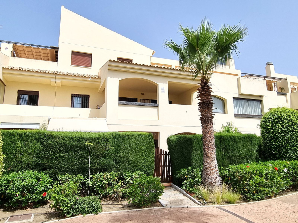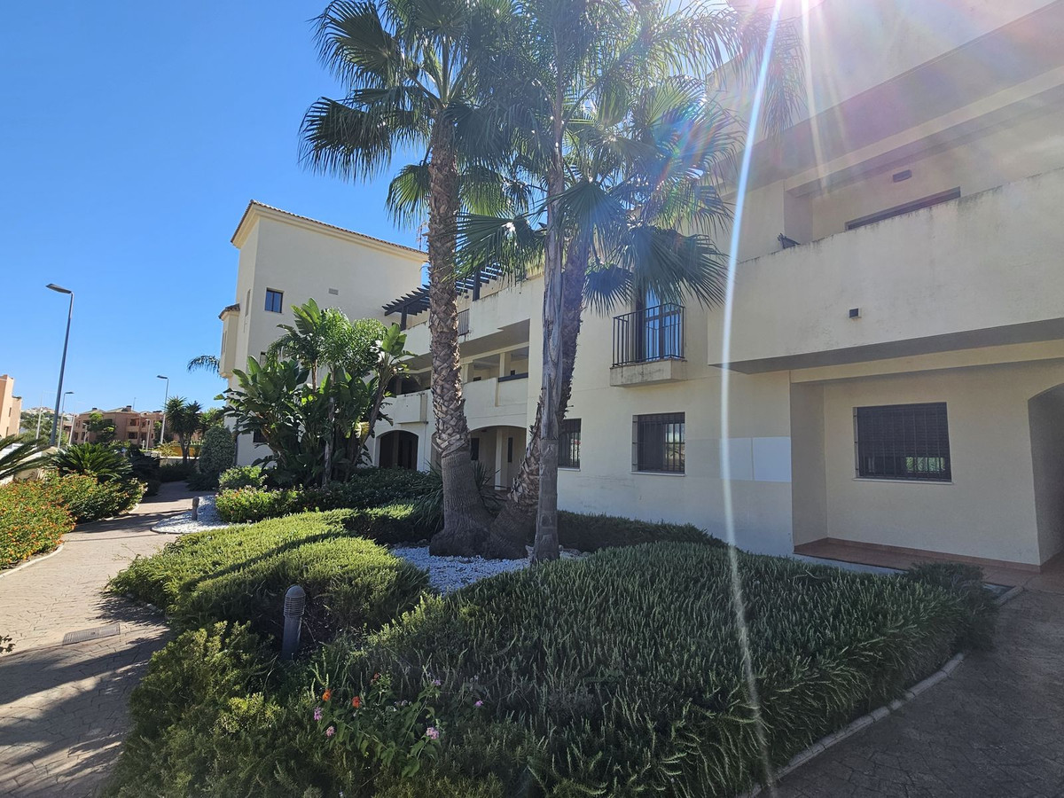 Used only as a holiday home, this apartment is in good condition and ready to move in to. The welcoming entrance hall leads to a fully fitted kitchen with charming golf views and a practical utility room. The living room/ dining room opens onto the large uncovered terrace, overlooking the swimming pools, gardens and the Mediterranean coast. The master bedroom, complete with en-suite bathroom, also has direct access to the terrace. Two additional bedrooms share a full family bathroom and all bedrooms are separated from the living area by a corridor, ensuring peace and quiet for family or guests.