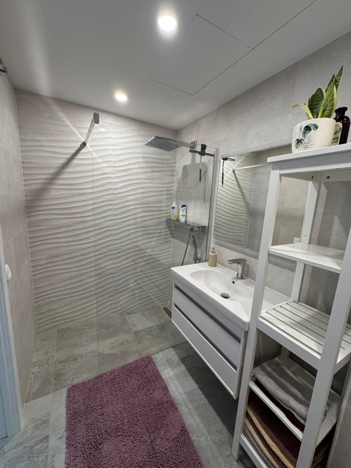 The perfectly designed penthouse offers three spacious bedrooms, all featuring built-in wardrobes and electric blinds on the windows. The main bedroom boasts an en-suite bathroom with double sink and a tiled walk-in shower with a rain shower head. The other two bedrooms share a second bathroom, also with a walk-in shower. In addition, there is a laundry room with additional storage space and a washer/dryer, underfloor heating throughout all the apartment, centralized air conditioning hot/cold, and an additional 2 water filters installed.