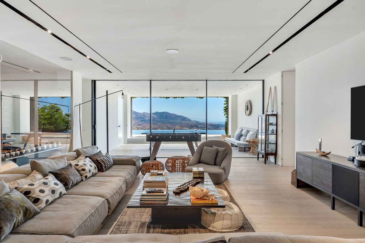 This unique three-level villa has been thoughtfully designed to embrace its privileged location and breathtaking scenery. From the moment you enter, you are welcomed by panoramic views of majestic mountains and the sparkling Mediterranean Sea.
