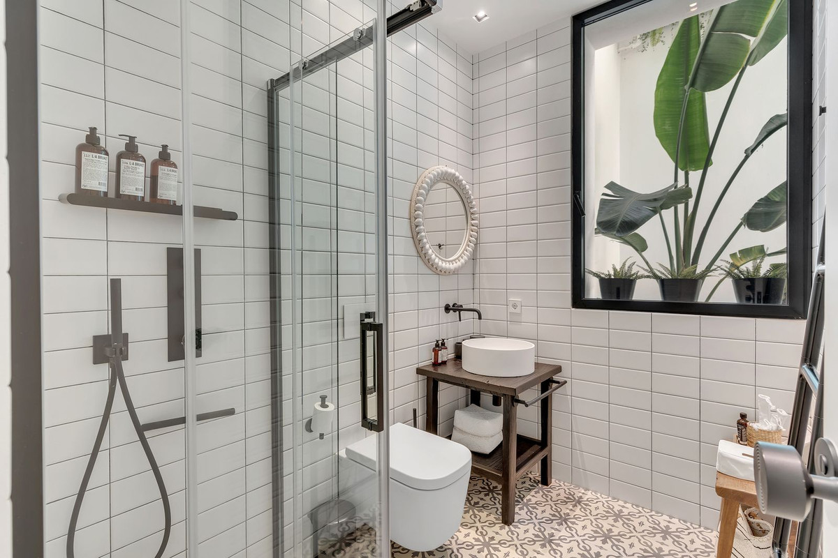 The middle floor is dedicated to entertaining and comfortable gatherings. The stylish open-plan kitchen is equipped with everything at hand, complemented by a practical pantry for extra storage. Enjoy breakfast at the central island with glass doors opening to the morning sun. The kitchen flows into the dining area and a bright, spacious living room featuring a striking vertical green wall that brings nature indoors. Floor-to-ceiling glass doors lead out to a wonderful terrace area, perfect for enjoying the Mediterranean lifestyle: long sunny days, al fresco dining with friends, barbecues, and relaxing in complete privacy surrounded by lush greenery.