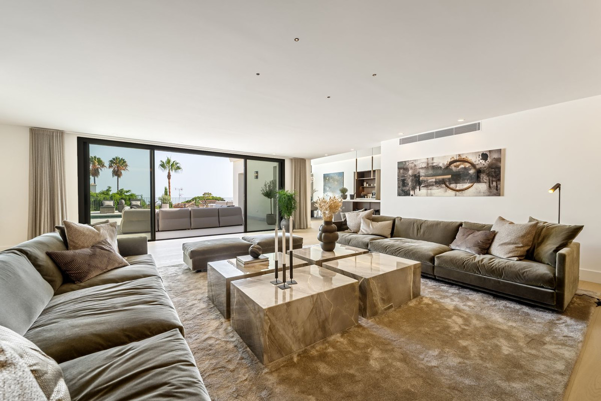 The heart of the home is an expansive open-plan living and dining area that seamlessly integrates with a bold statement kitchen featuring a central island. Five elegant bedroom suites ensure comfort and privacy, led by a spectacular principal suite with a private terrace, panoramic sea views, and a bespoke walk-through dressing room.