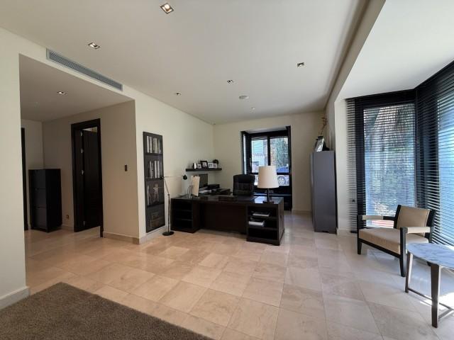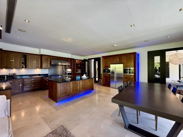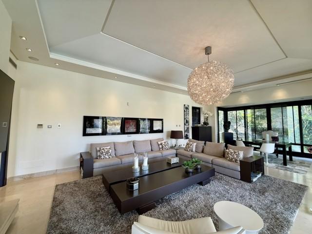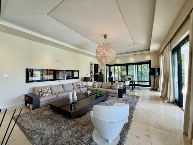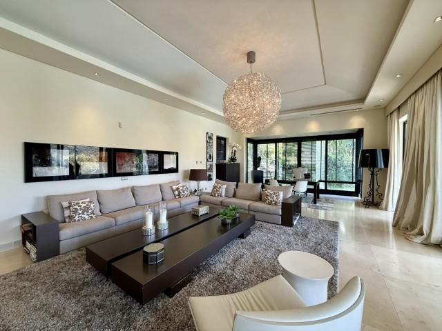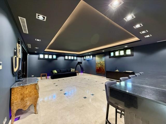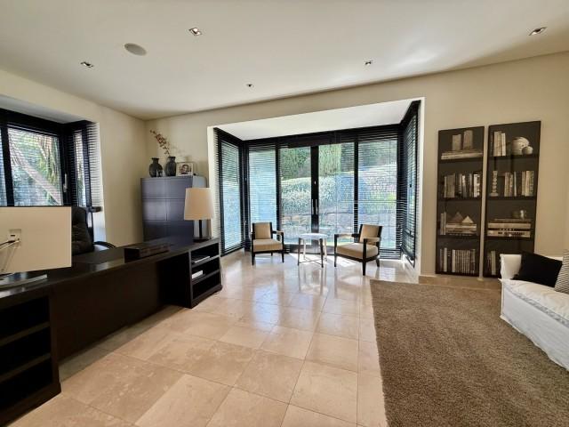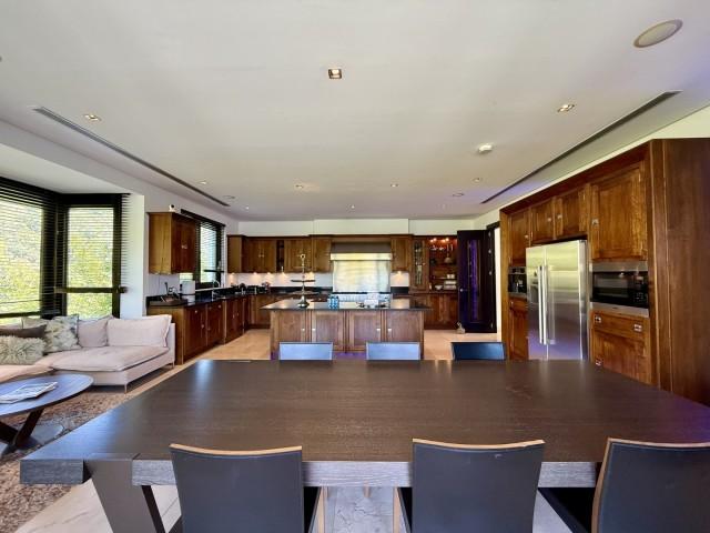 This luxury home also features a wine cellar, home cinema, bar, gym, sauna, and staff apartment, plus a garage for up to three cars. Outside, relax by the heated infinity pool surrounded by mature gardens and hardwood decking, ensuring complete privacy with no possibility of being overlooked.