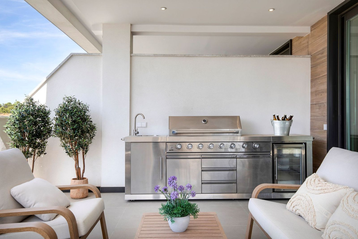 The 84 m² terrace is one of the defining elements of the home: an outdoor living space with an integrated kitchen and beautiful views towards the Mediterranean. A place for sunny mornings, long afternoons and soft evenings, where the transition between indoors and outdoors feels effortless.