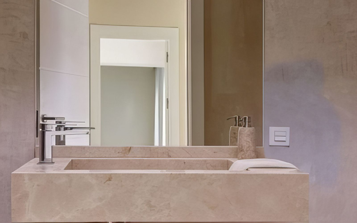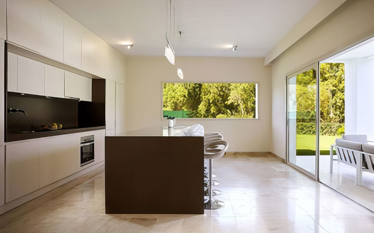 * The villa boasts beautiful cream-colored marble floors and benefits from underfloor heating. All rooms can be air-conditioned by cooling or heating.