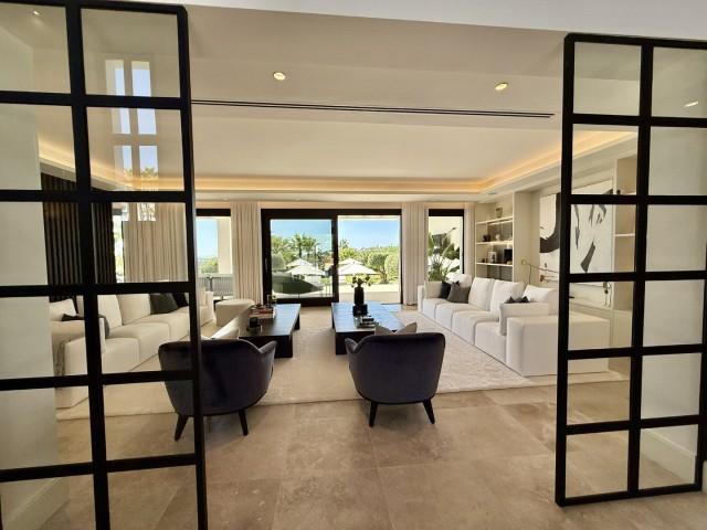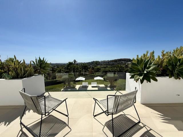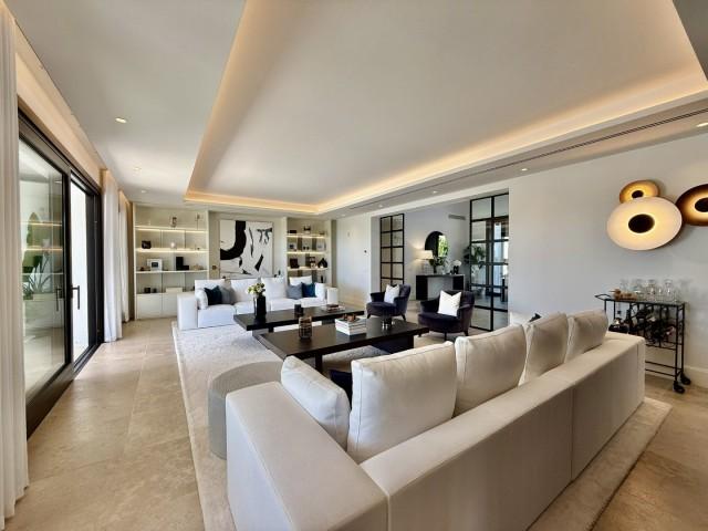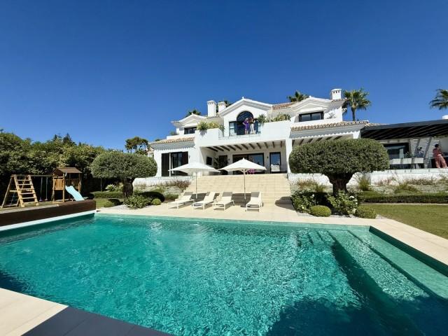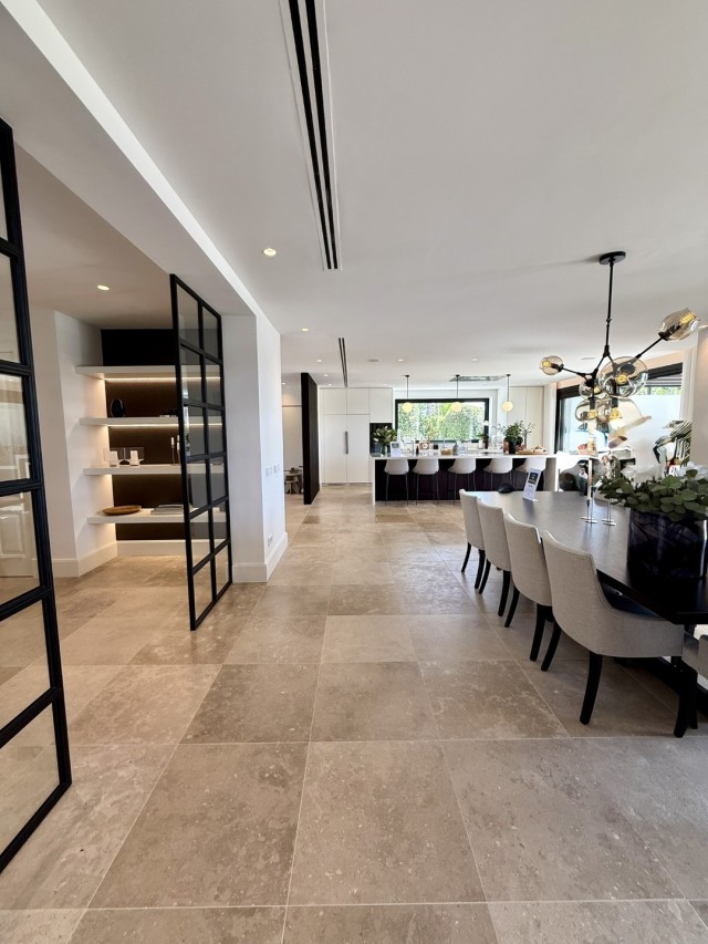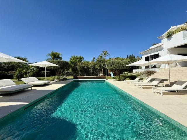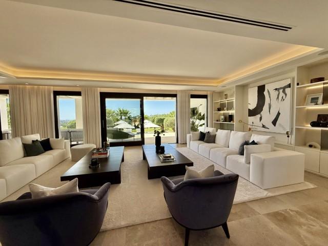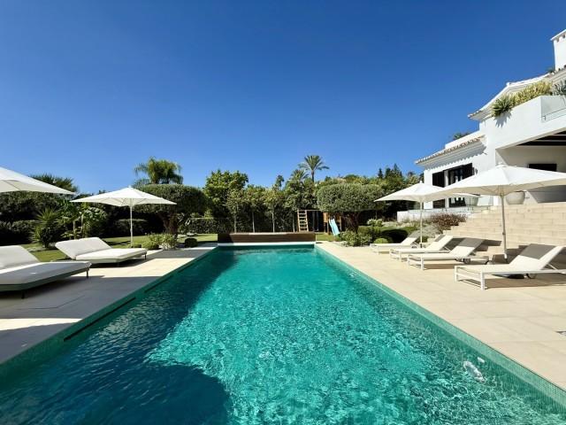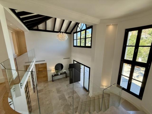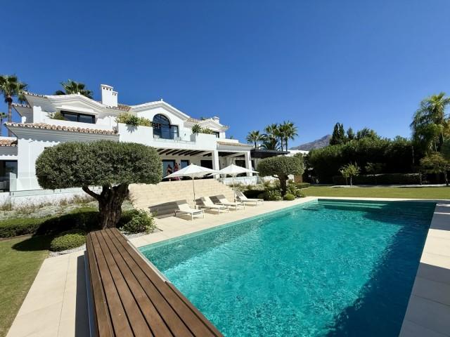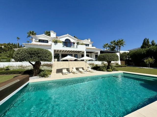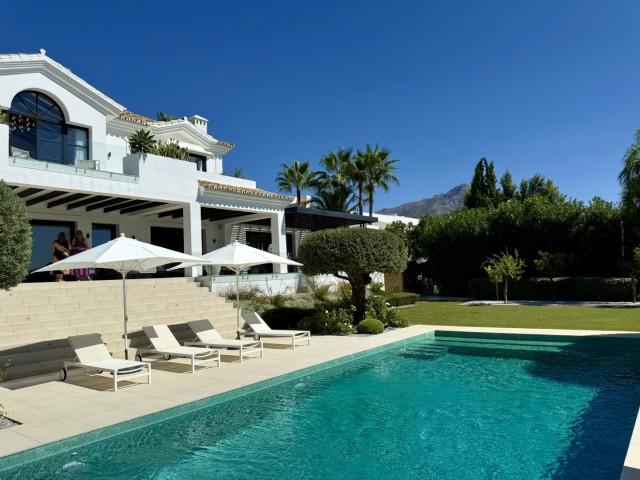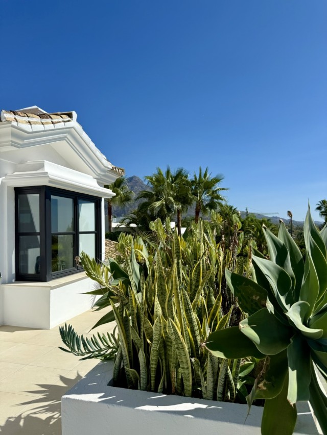 This timeless, fully renovated villa occupies a prime position on the highest street of La Cerquilla - Nueva Andalucía’s most prestigious community. Designed for contemporary living while retaining classical elegance, the property offers panoramic views across the Golf Valley towards the Mediterranean Sea.