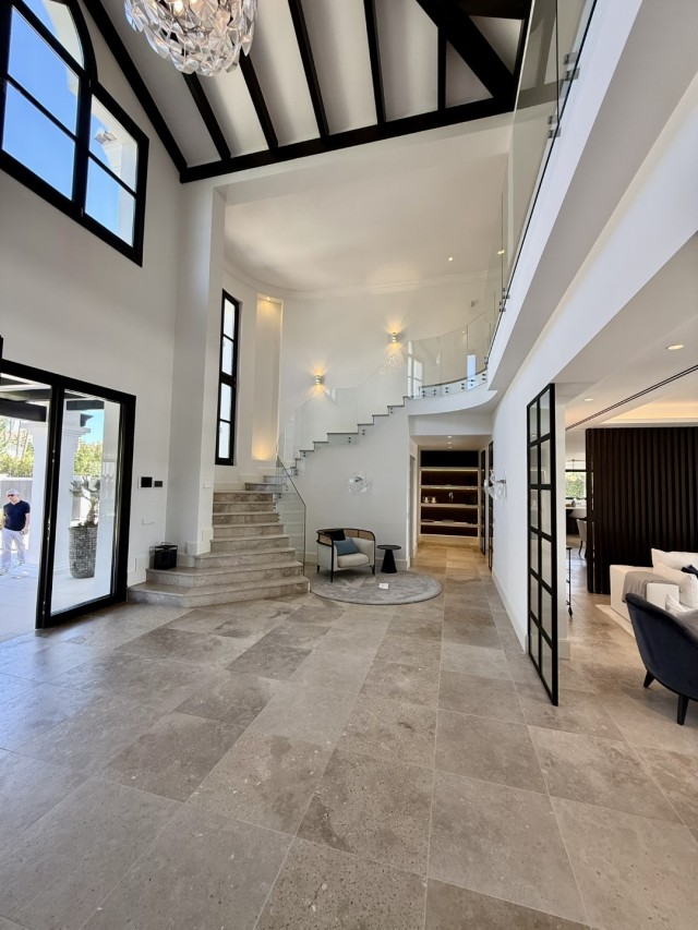 With more than 1,000 m² of living space across three levels and a plot of nearly 3,000 m², this is one of the largest and most impressive residences available in La Cerquilla. An elegant entrance courtyard welcomes you with space for several cars, leading to a double-height foyer with remarkable sea views.
