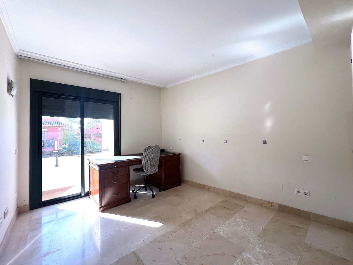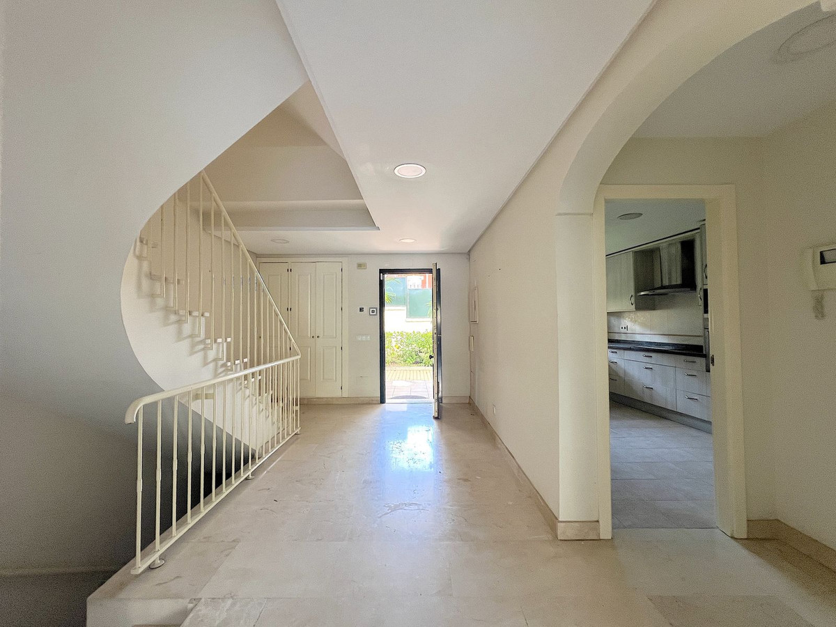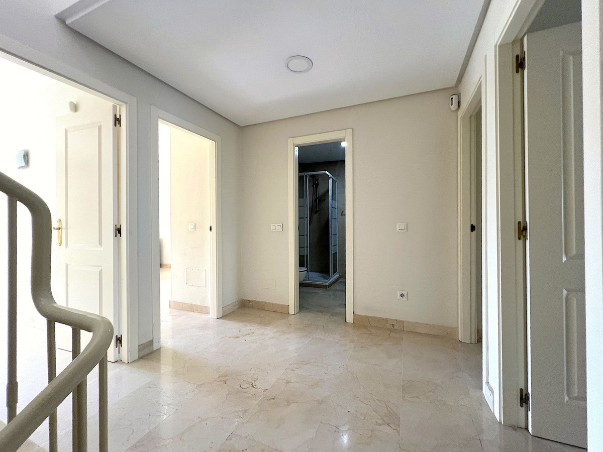 Spacious townhouse located in the Atalaya area next to Guadalmina, just a few minutes' drive from San Pedro de Alcántara and Puerto Banús, surrounded by several of the area's best golf courses, such as Atalaya, Guadalmina, El Paraiso, Los Arqueros, and more. The house is generously sized. It consists of a large living room with a separate kitchen with a utility room, four spacious bedrooms with three bathrooms, terrace areas, and a solarium. It also has a private parking space in the basement. Located within a small private development with communal gardens and a swimming pool, this is an ideal property for clients looking for a large home with many possibilities.