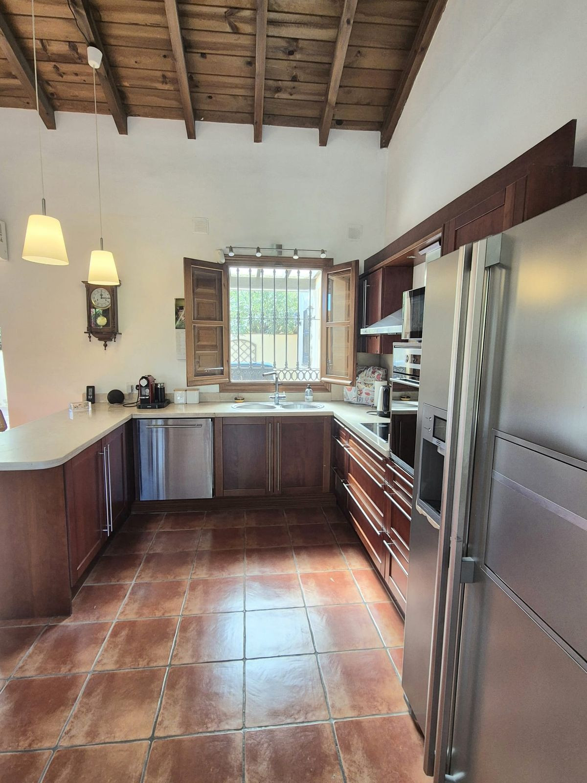 Outside you have a fabulous pool area with plenty of seating areas and a large fully fitted outside kitchen with everything you can think of! Fridges, oven, barbecue, washing machine, bar area... to the side you have access to the same courtyard as the house and around the back you have an outside bathroom and workshop / storage area. The plot is fully fenced and has lots of different areas, and different usefull levels. At the back of the house is the water deposit is for the canal water. As well as an extra fence off area for when you have dogs or other small animals. At the bottom of the house you have also a large space, with a well, asmall dry river which gives it all a nice feature and in this area is also the septic tank.
