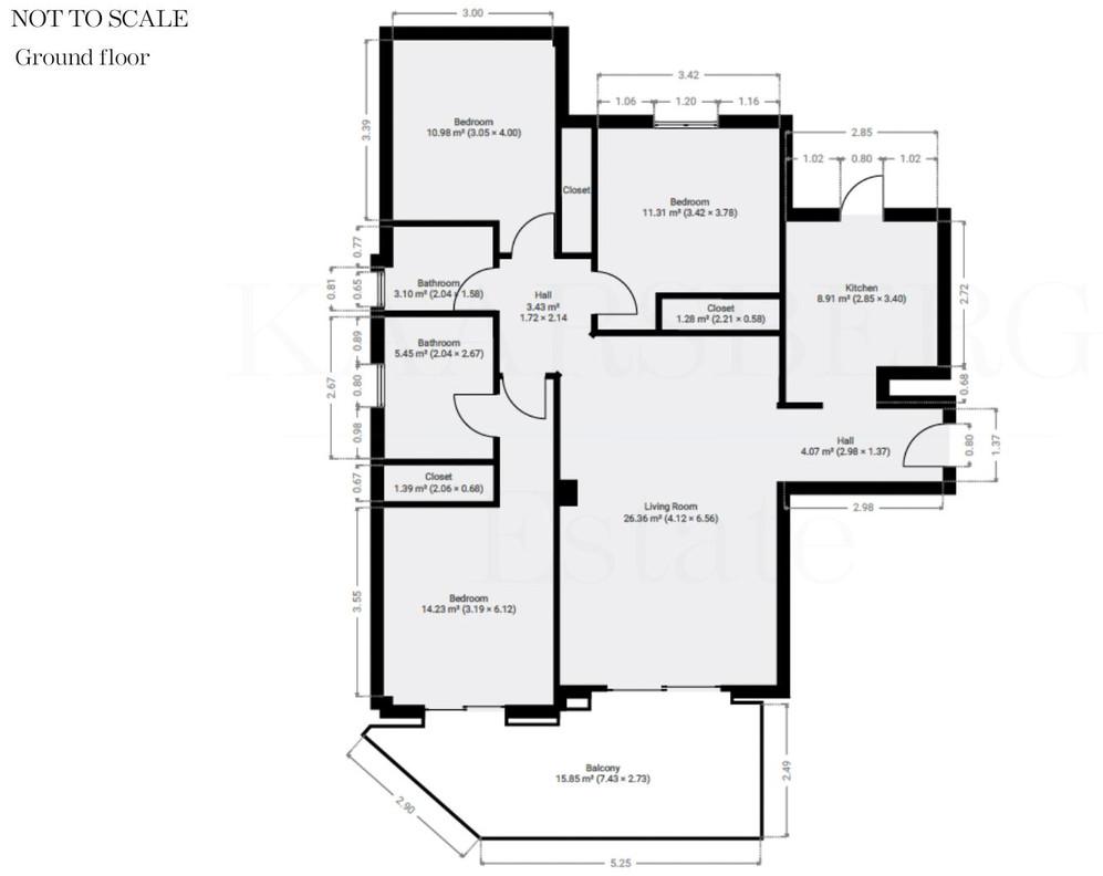 The master bedroom features built-in wardrobes and an en-suite bathroom, while the two additional bedrooms share a modern family bathroom, offering flexibility for family, guests or even a home office.
