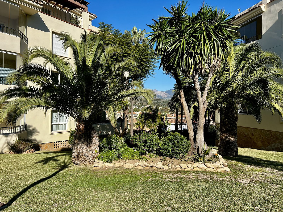 Situated in Phase II, the terrace offers panoramic views of the Sierra de Mijas mountains, the surrounding landscape, and the communal garden with swimming pool. The generous outdoor space is one of the main highlights of this property.