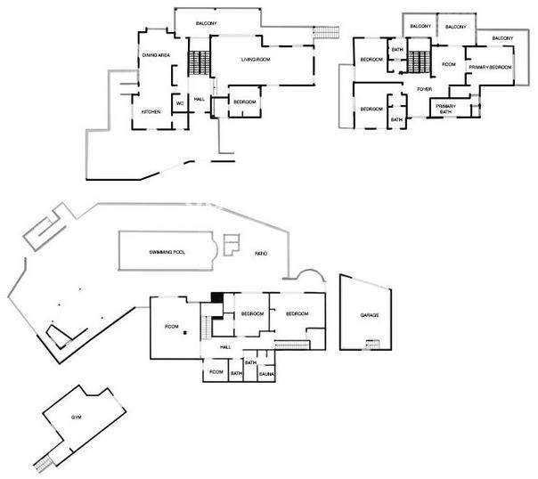 Equally considered are the spaces dedicated to wellness. A fitness suite, sauna, and hot tub invite relaxation and rejuvenation, while a secluded garden area, designed for yoga and meditation, is enhanced by the soothing sound of a cascading waterfall. For more animated moments, the entertainment lounge provides a pool table, bar, and party kitchen with wine cooler, ensuring evenings of conviviality unfold with ease.