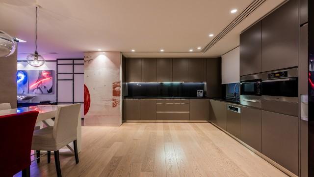 Inside, the penthouse has been thoughtfully designed to maximise both comfort and style. Three generous bedrooms each feature en-suite bathrooms, blending privacy with refined finishes. The open-plan living and dining area is bright and welcoming, seamlessly connected to the terrace through large glass doors. A fully fitted kitchen equipped with premium appliances complements the home’s elegant entertaining spaces.