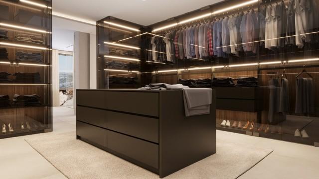 The first floor has two wings as well. The left wing features the spacious master bedroom with an en-suite bathroom, toilet, and walk-in closet, which includes a central island for storing the most valuable items of your wardrobe, such as jewelry and unique bags. The island also includes a hidden feature. The master