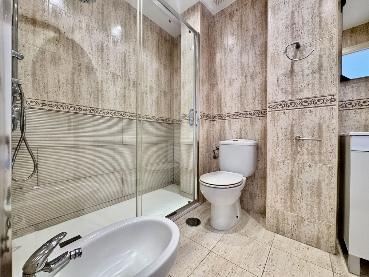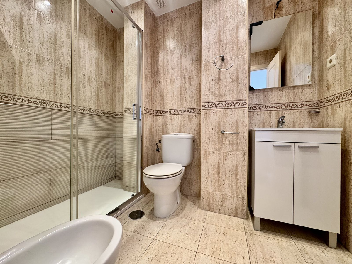 The interior layout includes two bedrooms, two full bathrooms, a bright and spacious living-dining room, and a large independent kitchen with well-maintained furniture. All windows are Climalit double glazing, ensuring improved thermal and acoustic insulation. In addition, the property benefits from excellent sun orientation, providing natural light throughout most of the day.