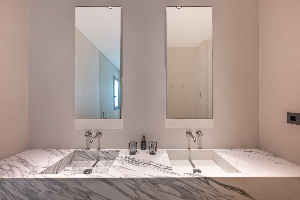 The kitchen has been designed by the prestigious Bulthaup brand and the appliances by the renowned Miele and Bora Dhu brands. In the bathrooms, the prestigious firm Villeroy & Boch is present.