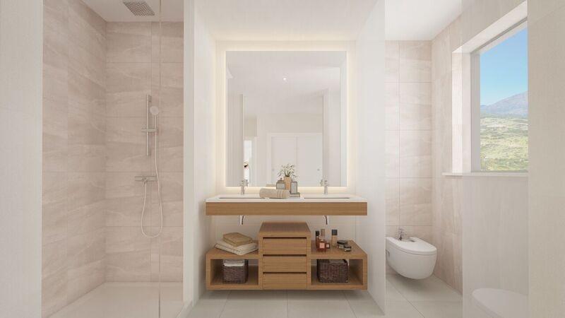 Large dining rooms with integrated kitchens, fully EQUIPPED WITH SIEMENS appliances (or similar), with furniture and hood flush to ceiling and American fridge in the penthouses, two terraces and, overlooking the Sierra de Casares and Estepona. The main bedrooms with bathrooms en suite, dressing rooms, wardrobes with lighting with LED strips and terrace. Bathrooms with rain shower, suspended toilet, hidden cistern and whirlpool in the penthouses