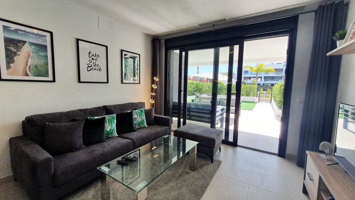 This stunning ground-floor apartment in Los Miradores del Sol Phase I perfectly combines contemporary luxury with Mediterranean indoor-outdoor living on Estepona’s exclusive New Golden Mile. Offering 92 m² of elegant interior space and an impressive 84 m² of private terraces and gardens, it’s ideally located just a short walk from the beach, shops, and restaurants.