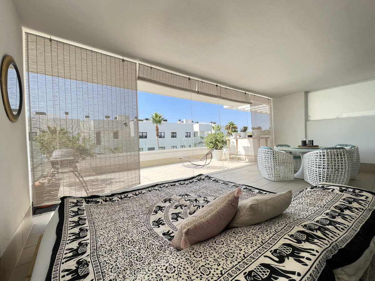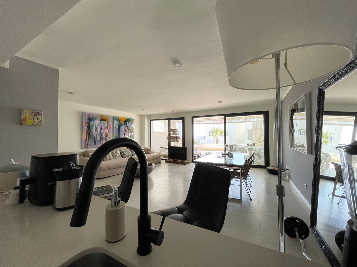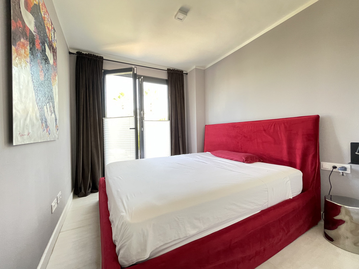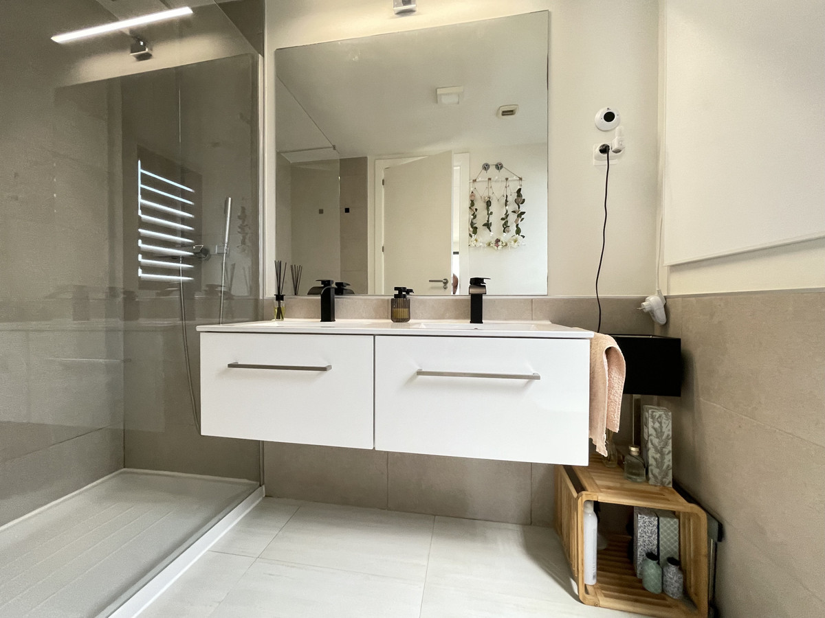 We present this exceptional ground floor apartment located in the sought-after area of Las Olas, in West Estepona. The property, with a built area of 182m² and 90m² of interior space, stands out for its transformation from the original three bedrooms to a modern two-bedroom design, allowing you to enjoy a 30m² living room, providing greater space and comfort to the living area.