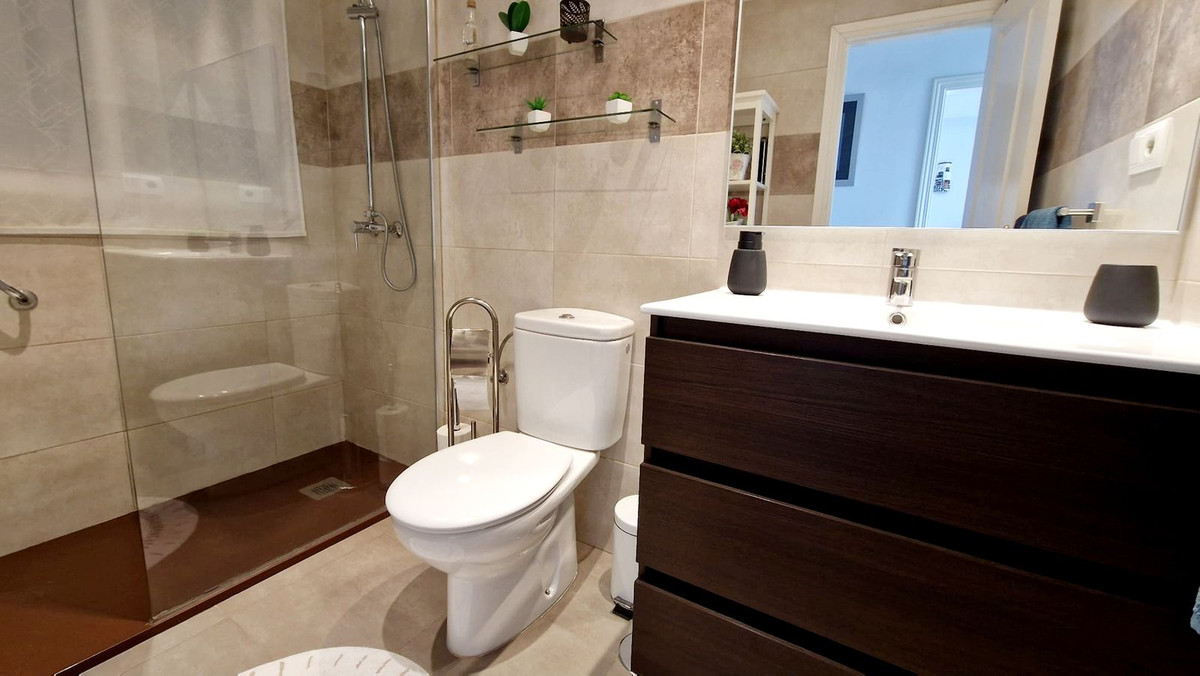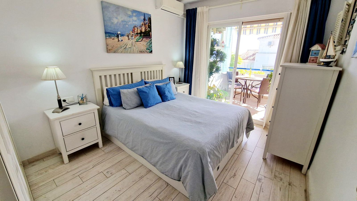 Beautifully renovated one-bedroom apartment for sale in lower Los Pacos, within walking distance to shops, restaurants, and public transport. This bright and sunny home features a spacious terrace with glass curtains and lovely sea views — perfect for year-round enjoyment.