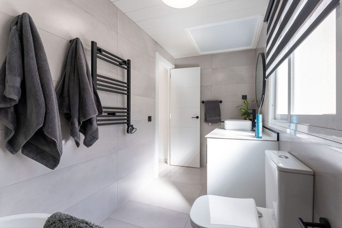 Upper floor: Three double bedrooms with built-in wardrobes, including the master bedroom with en-suite bathroom. The two additional bedrooms share access to a sunny terrace, and there is also a modern family bathroom.