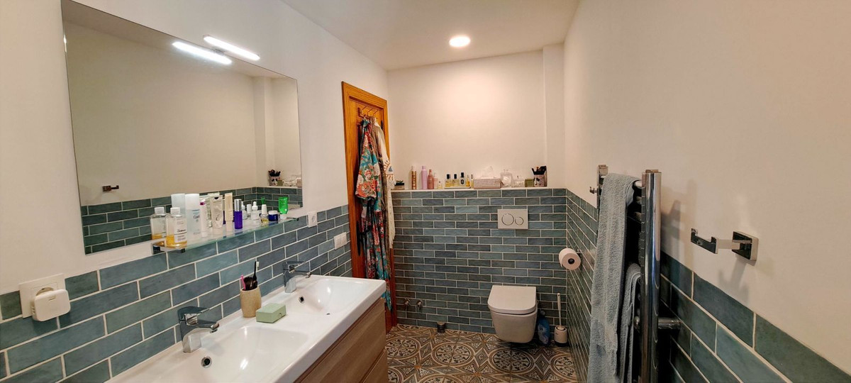At the end of the corridor is the master bedroom. A beautiful spacious room with built-in wardrobes and air conditioning. Adjacent to this bedroom is a very spacious, modern and luxurious bathroom.
