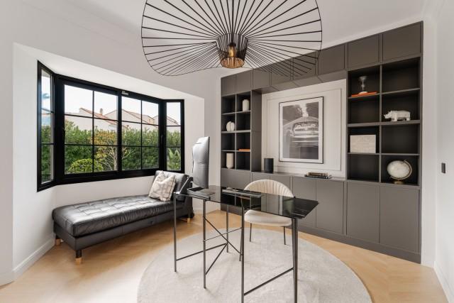 This sophisticated contemporary villa located in Mont Biarritz represents a unique opportunity to enjoy a modern, elegant, and sustainable lifestyle. Completely renovated in 2024, it combines solid architecture with clean-lined Scandinavian design and high-end finishes. Spread over three floors and with a total area of 448 m², it offers six spacious bedrooms and four bathrooms, as well as bright and functional spaces that harmoniously connect the interior with the exterior.