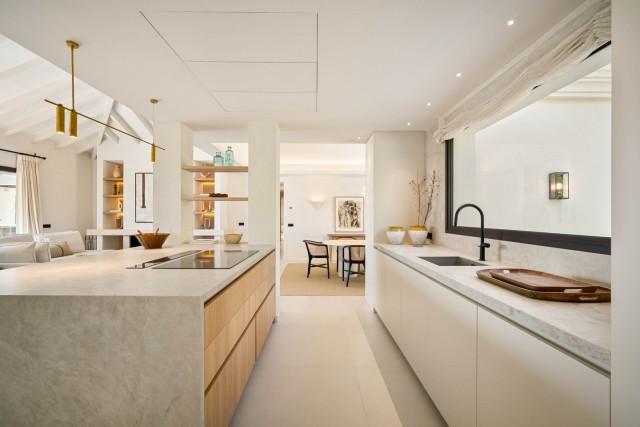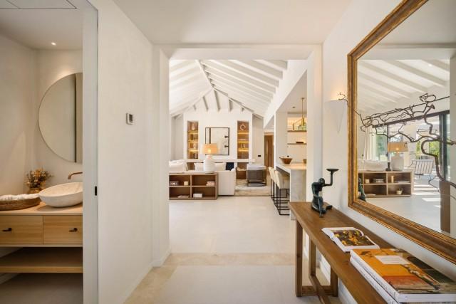 A beautifully reimagined single-level villa nestled in the heart of Nueva Andalucía, just minutes from the renowned Los Naranjos Golf Course. This exquisite 4-bedroom home merges Mediterranean elegance with contemporary comforts. Set on a lush, elevated plot, the villa offers privacy, tranquility, and breathtaking views across the valley to the sea, all while being moments away from Marbella’s best golf, dining, and beach experiences.