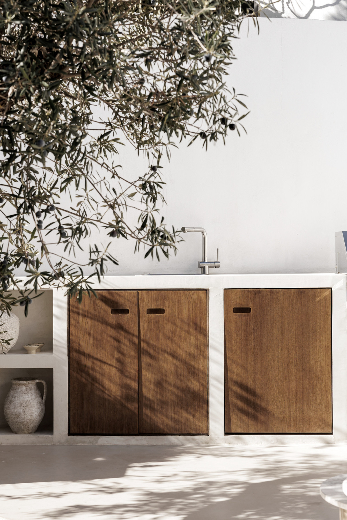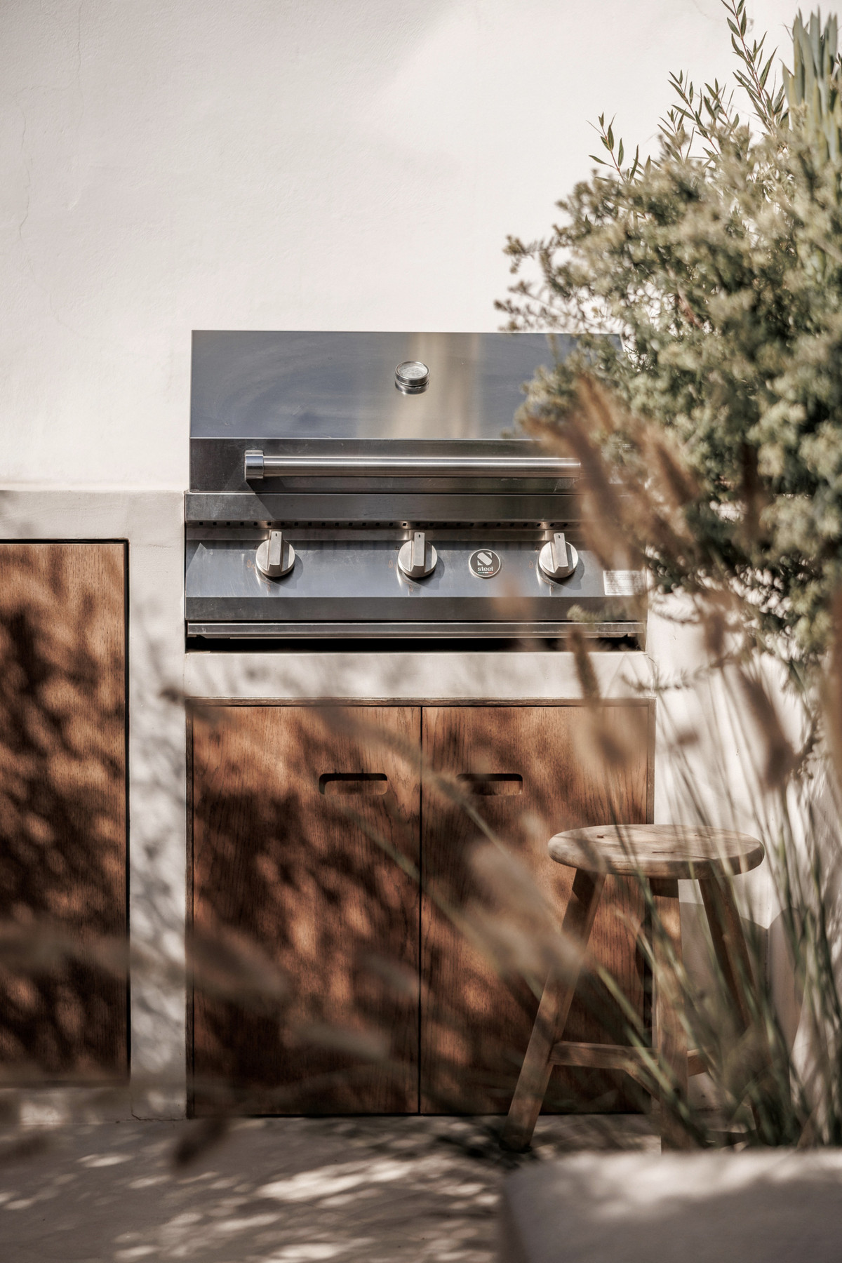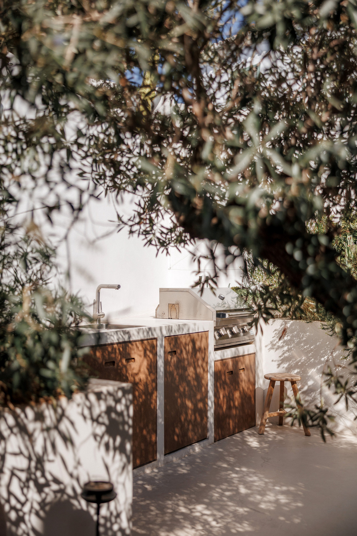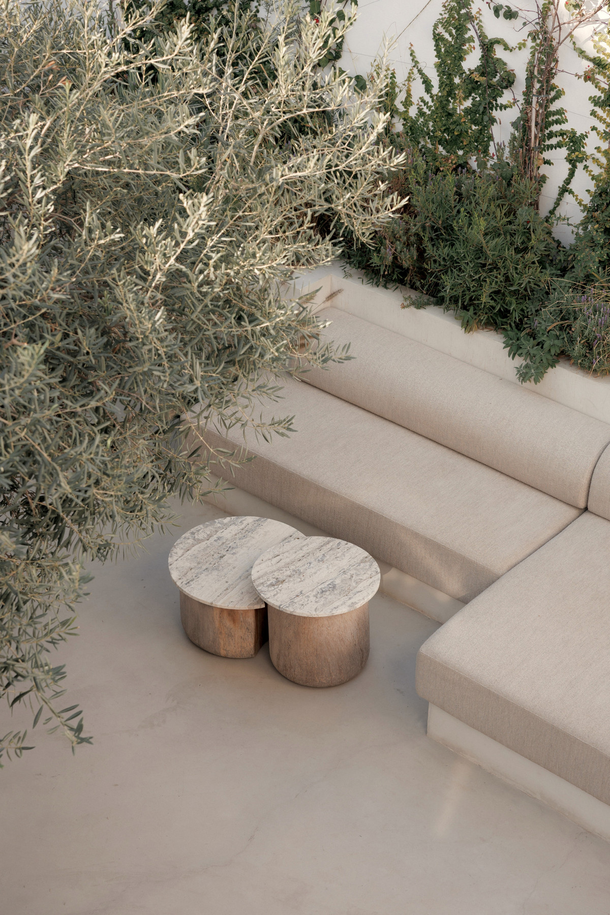 The property is distributed on two levels, and comprises 89 m2 of interior areas plus a large 50-m2 terrace. The ground floor features an open-plan living area with a fireplace and a fully equipped designer kitchen with a marble island and high-end appliances. The living area opens onto the spacious 50-m2 terrace with a Jacuzzi, outdoor shower, summer kitchen with barbecue, and stylish lounge and dining areas surrounded by lush greenery—perfect for relaxing or entertaining. A guest toilet completes this level.