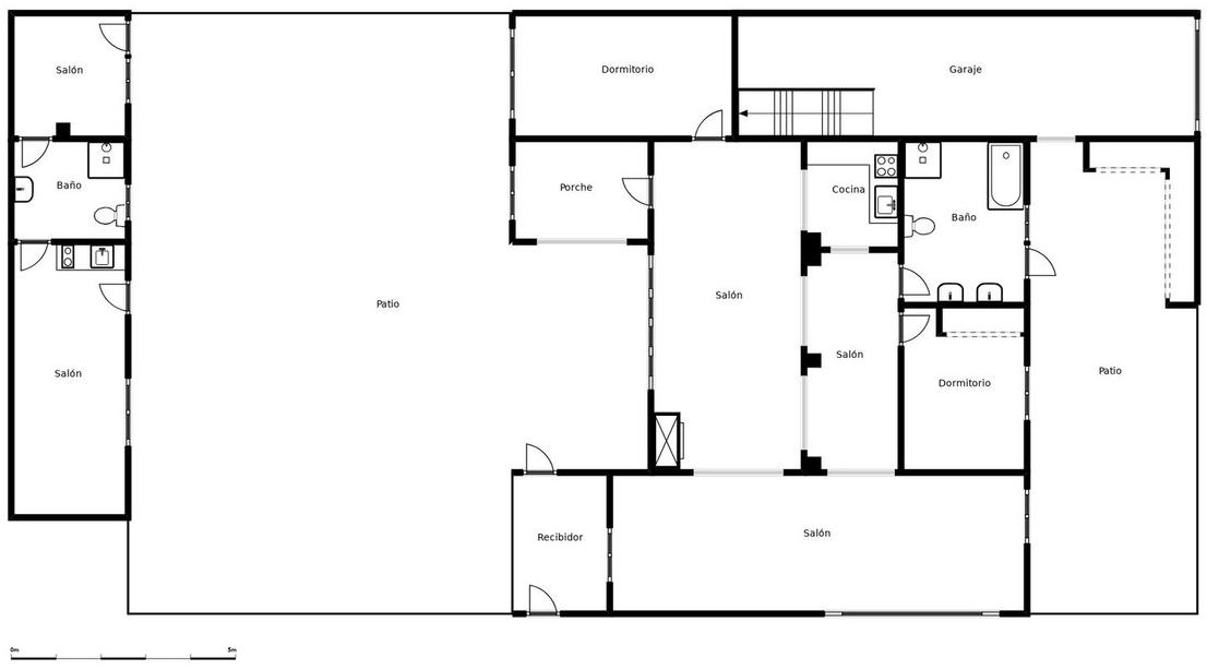 The villa features a total of 5 bedrooms, distributed across two independent dwellings: