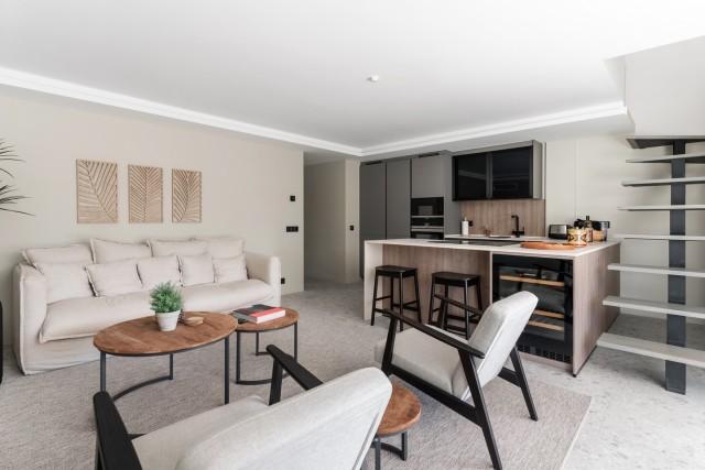 The highlight is the private rooftop terrace, complete with a sleek pool, dining and lounge area, and panoramic views of La Concha and the city. It’s the perfect setting for slow mornings, sunset dinners, and evenings with friends under the Marbella sky.