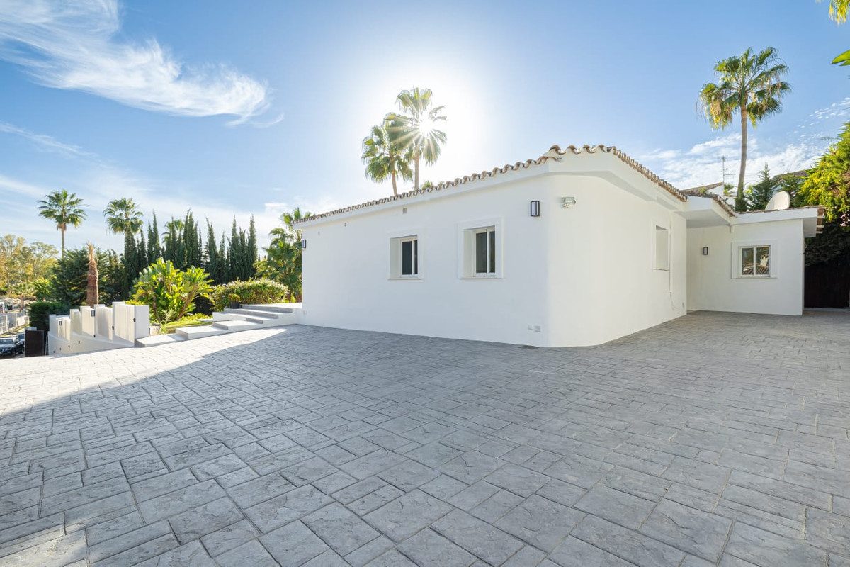This beautiful recently renovated villa is situated on a large plot, in a very quiet and private area of Estepona. Just a short drive away you'll find everything you need, wonderful beaches, promenades by the sea and all the quaint Spanish towns of the Costa del Sol. With a south orientation, it enjoys plenty of natural light throughout the day, and its design allows for a beautiful view of the pool, surrounding area and tropical gardens.