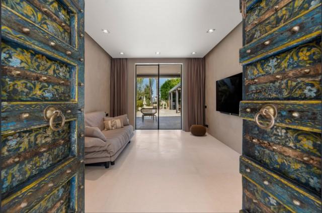 Outdoors, Villa Ibiza is perfect for entertaining with a second fully equipped kitchen, barbecue, and elegant dining spaces. Secure parking for up to 10 vehicles, underfloor heating, and 24-hour security in this sought-after residential enclave make it a true retreat. Combining elegance, privacy, and a prime Marbella location,