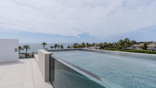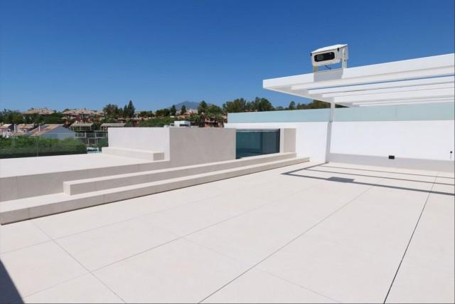 This exceptional semi-detached villa is located in a prestigious gated community on Marbella's Golden Mile, just 250 meters from the beach and within easy reach of the Puente Romano and Marbella Club hotels. Spread over four levels, it combines contemporary architecture, high-quality materials, and a functional design, making it ideal as a primary residence, holiday home, or profitable investment.