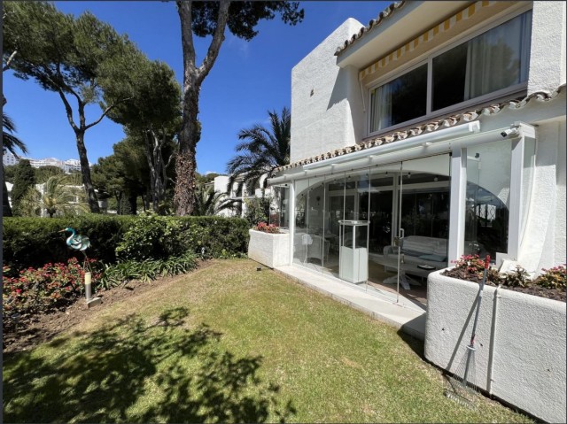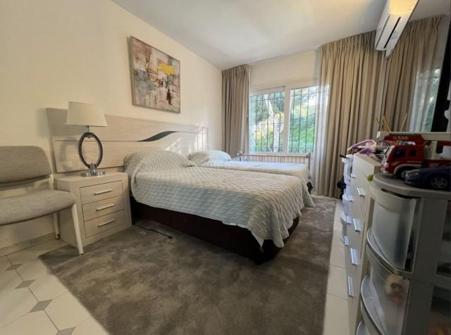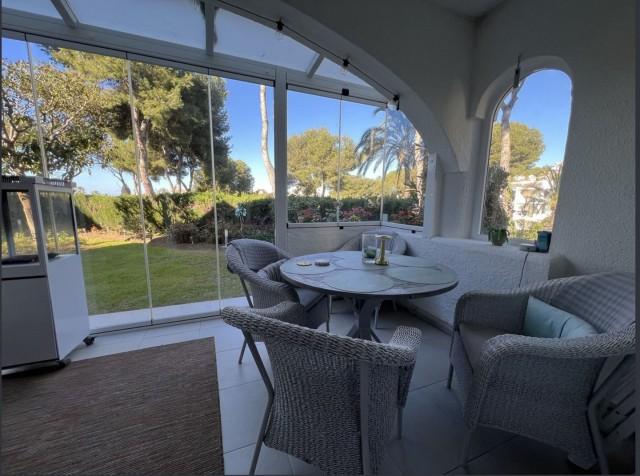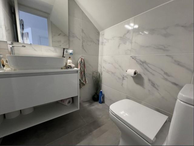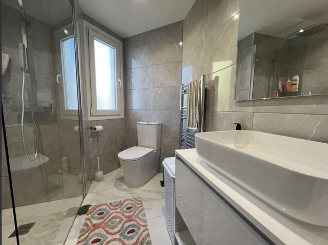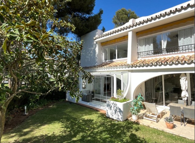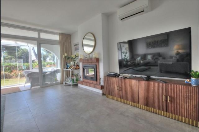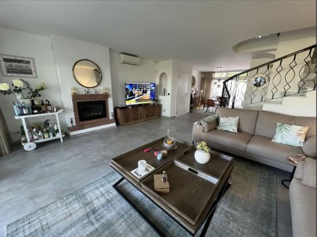 This gorgeous semi-detached house in Miraflores will stun you with its tasteful interior updates and yet it still maintains it's Spanish feel. The ground floor welcomes you with a bright, large lounge, dining area, and open-plan kitchen. There is a lot of natural light pouring in from both sides of the house, plus you have the use of the private terrace on the east side, ideal for having breakfast in the morning sun. The lounge leads onto the westerly terrace, which has been enclosed using glass curtains, giving you even more living space, and then access onto the garden area, which is shared by only one other house. Other features on the ground floor include a brand new kitchen, a gas living flame fireplace, plus a guest cloakroom. Upstairs is where you will find the huge main bedroom with an en-suite bathroom plus a walk-in wardrobe. You also have two additional double bedrooms and a shared family bathroom. There is hot and cold air conditioning throughout the house, plus owners have the use of the stunning communal swimming pools, and you are only a stone's throw from the Miraflores tennis club. Owners have the use of two communal swimming pools and off-street parking. You will not be disappointed.