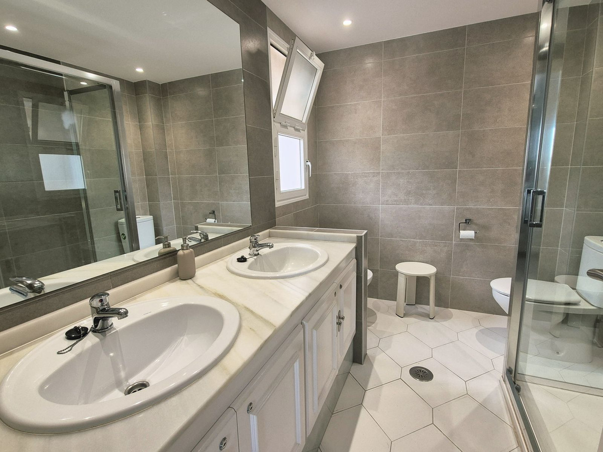 There are three generous bedrooms, all with built-in wardrobes and new mattresses. The master bedroom includes a stylish en-suite bathroom with a double sink and a large walk-in shower. Both bathrooms have been tastefully renovated with modern finishes.
