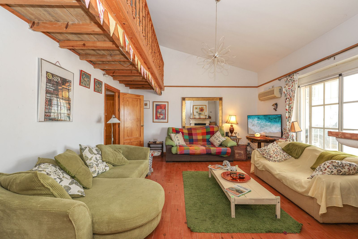 The house itself is spacious and full of potential, though it does require renovation. Large patio doors open into the central living area — a bright dining room with an open-plan kitchen. To the right, you’ll find the lounge with a mezzanine level, ideal as an additional sleeping area or reading nook. This side of the home also features two double bedrooms, each with its own ensuite bathroom.
