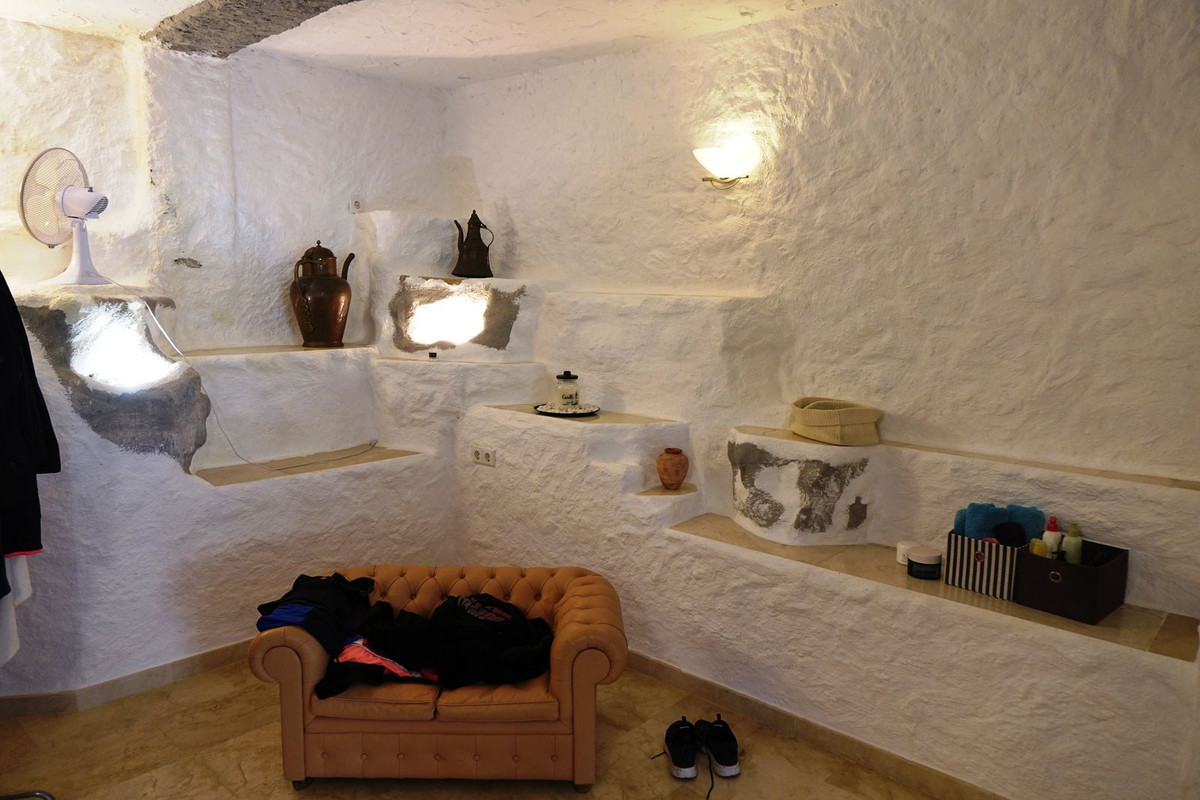 A welcoming and expansive layout featuring two comfortable living rooms—one with a dining area and a small bar, and the other with a cosy fireplace. An additional dining space opens directly onto the pool and terrace, creating a perfect indoor-outdoor flow for entertaining. The large independent kitchen completes this level.