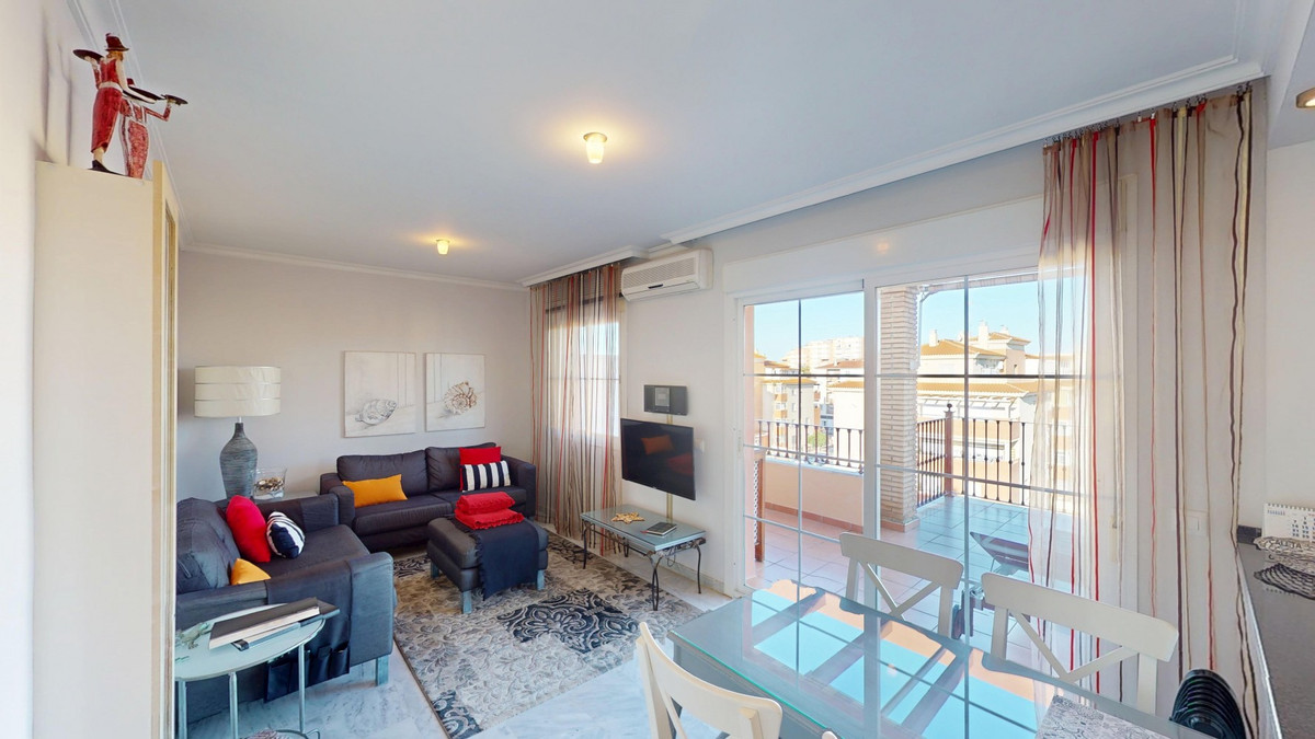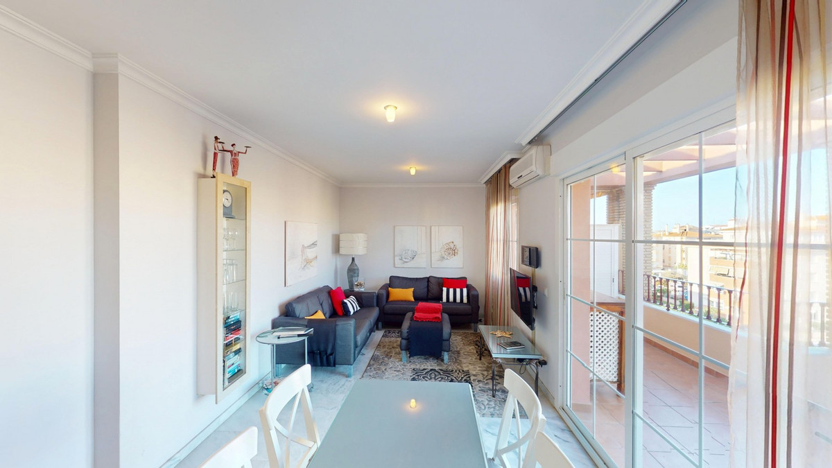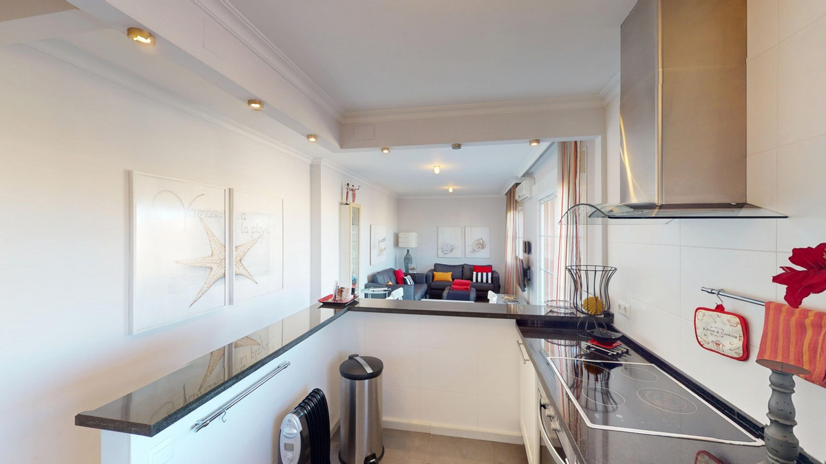 Welcome to this charming penthouse in the coastal village of Mezquitillaa perfect blend of comfort, functionality, and Mediterranean lifestyle. This well-designed apartment stands out with two private terraces, both offering lovely sea views and plenty of space to relax, dine, or entertain outdoors. The bright and airy living room flows seamlessly into the kitchen and opens directly onto one of the terraces, creating a wonderful indoor-outdoor feel. One of the two bedrooms also has direct access to the terrace, bringing in plenty of natural light and sea breezes. Both bedrooms are equipped with built-in wardrobes, and the entire apartment benefits from air conditioning for year-round comfort. The kitchen is compact yet stylish, featuring sleek white cabinetry, black countertops, and stainless steel appliances. The open-plan layout and thoughtfully chosen décorwith warm tones and pops of colorcreate a welcoming and contemporary atmosphere. The bathroom is modern and well-appointed, offering a combination bathtub and shower, a vessel sink, and quality fixtures that make the space both functional and pleasant. A private parking space and a separate storage room offer added convenience, and the well-kept community includes a shared poolideal for a refreshing dip on warm days. Located just a short stroll from the beach, local restaurants, shops, and other amenities, this penthouse is ideal for those looking for a full-time residence, a relaxing holiday home, or a solid investment on the sunny coast. We are pleased to be able to present this dream property to you soon, either personally or via virtual viewing. Because this world is unique - just like our Axarquía. In Andalusia. On the Costa del Sol. Here, on the sunny side of life...
