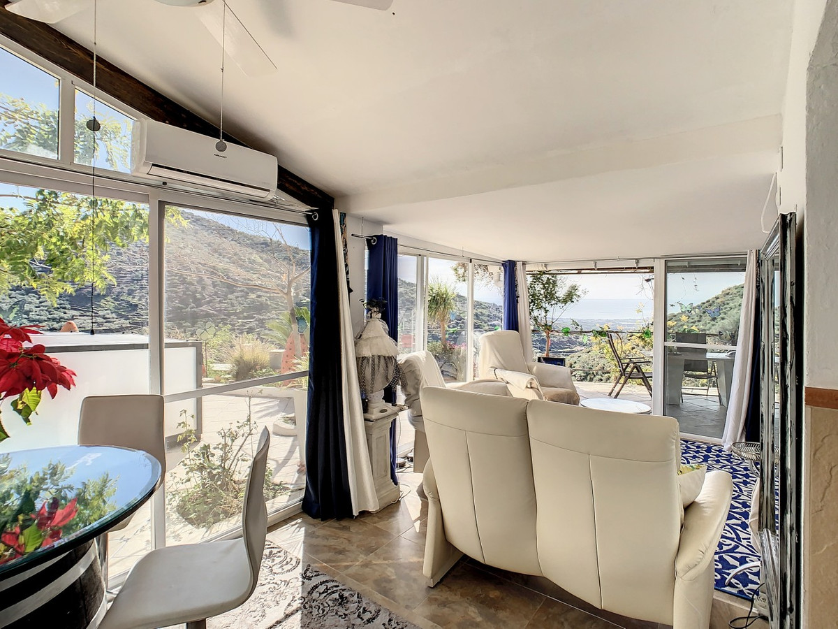 You are looking for a large villa with a heated swimming pool, neatly hidden nearly at the top of a mountain, surrounded by nature with breath-taking views of the valley up to the sea and the village of Arenas? This might just be what you are looking for. At the entry of the property, you find a covered parking space for at least 6 cars and a workshop. From there you step onto a wide porch that surrounds the whole property. In the centre of the house, that ́s all on one level, you find an office, 3 bedrooms, 2 bathrooms (one on-suite), 2 kitchens, an open bbq space, a large sitting/dining room and more sitting areas with views to the outside through French doors. Around the porch there is an array of different privative sitting/sunbathing spaces where it is just a dream to be. Here you also find the heated swimming pool, palm trees, an exterior bedroom and a passage leading to little romantic benches with fantastic views all around the foot of the property. There is also an outdoor kitchen. This property is well finished and comes with all the amenities. It is perfect for people that are fond of comfort and privacy. We are pleased to be able to present this dream property to you soon, either personally or via virtual viewing. Because this world, it is unique - just like our Axarquía. In Andalusia. On the Costa del Sol. Here, on the sunny side of life...
