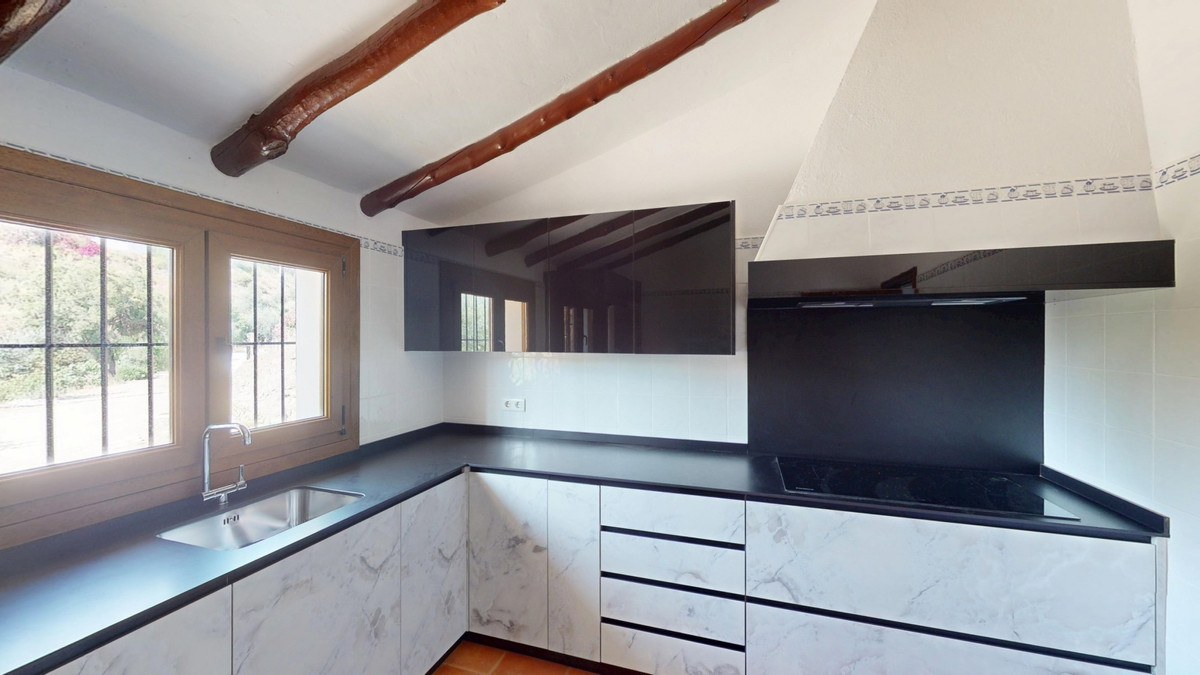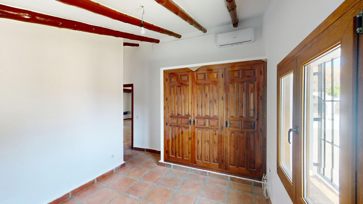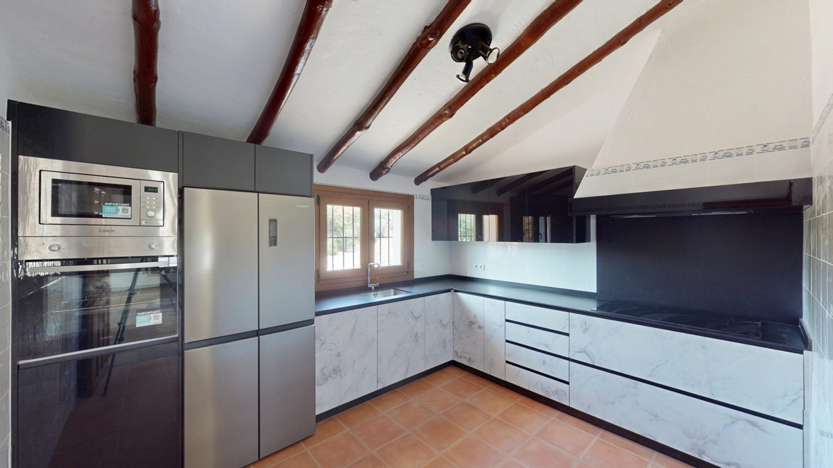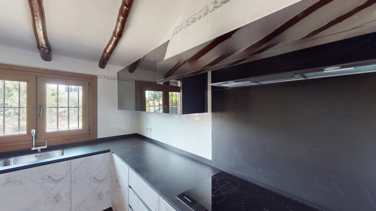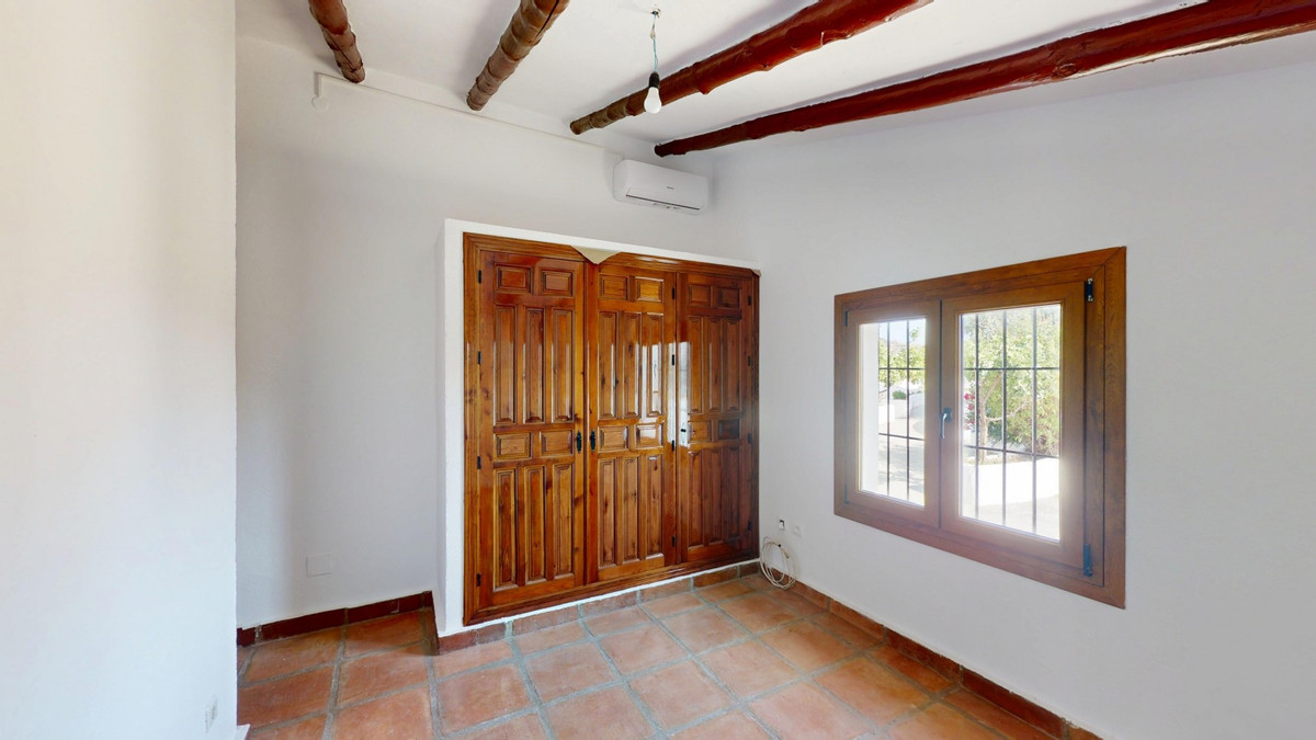This delightful Spanish villa, located in Viñuela, Málaga, offers a perfect blend of traditional charm and modern comfort. The single-story property spans 167 m2 and features three bedrooms, including a spacious 13.9 m2 primary bedroom, and two bathrooms. Upon entering, you're greeted by the home's most striking feature: beautiful terracotta tile flooring that runs throughout, creating a cohesive and authentic Spanish ambiance. The living areas are characterized by their high, sloping ceilings with exposed wooden beams, adding rustic charm and visual interest to the space. The heart of the home is undoubtedly the living room, which boasts a magnificent stone fireplace as its centerpiece. Large windows and glass doors in this area, as well as in the bedrooms, allow ample natural light to flood the interiors while offering picturesque views of the surrounding landscape. The kitchen presents a harmonious blend of traditional and contemporary design. Modern appliances and sleek cabinetry are juxtaposed against the rustic ceiling beams, creating a functional yet aesthetically pleasing culinary space. The bathrooms, while not extensively detailed in the images, appear to have been updated with modern fixtures. Storage is thoughtfully incorporated throughout the home, with built-in wooden wardrobes in the bedrooms that maintain the overall rustic aesthetic. The property also features two patios, offering delightful outdoor spaces for relaxation and entertainment. A unique aspect of this villa is its attention to decorative details, such as the ornate tile borders in the hallways and bathrooms, which add a touch of traditional Spanish flair to the otherwise simple and elegant interiors. Outside, the villa boasts a beautiful pool and a charming outdoor area perfect for enjoying the Mediterranean climate. Overall, this Málaga villa offers a warm, inviting atmosphere that beautifully marries traditional Spanish architectural elements with modern comforts, creating a truly special living space. We are pleased to be able to present this dream property to you soon, either personally or via virtual viewing. Because this world is unique - just like our Axarquía. In Andalusia. On the Costa del Sol. Here, on the sunny side of life...