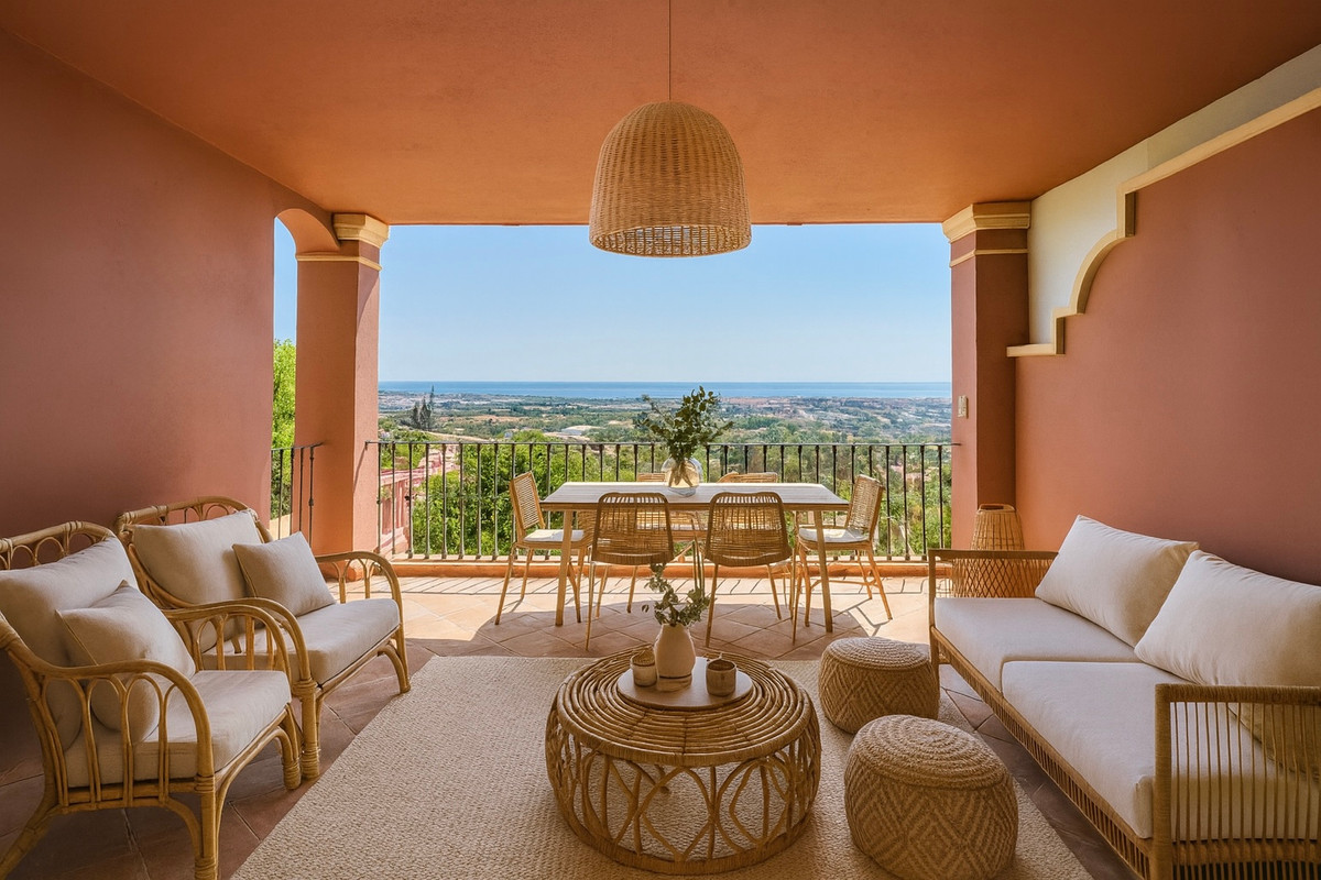 New to the Market!..Open Sea and Marbella Views from the Living RoomApartment in Monte Halcones, BenahavísDiscover this stunning apartment where the first thing you see upon entering is the sea.The living room opens directly onto a spacious south-facing terrace, offering endless panoramic views of the Mediterranean and the Marbella skyline a space where the blue of the sea becomes part of your daily life.With 133 m² of interior space and a 23 m² terrace, the property boasts generous proportions, natural light and a highly versatile layout. It features a large living room, two bedrooms with en-suite bathrooms, fitted wardrobes, and an independent kitchen that can be opened up to the living area or transformed into a third bedroom or office.Located in one of the most exclusive and peaceful areas of Benahavís, within a well-kept urbanisation with manicured gardens, two swimming pools and communal parking.In addition, the property includes renders showing how it could look after a renovation or update, helping you to visualise its full potential.A unique property with truly captivating views.Ideal as a main residence or second home on the Costa del Sol.The abbreviated information document is available to you. Expenses: Taxes (ITP or VAT+AJD) + Notarial and registration expenses.ERE