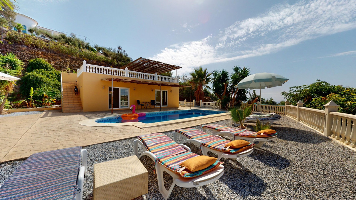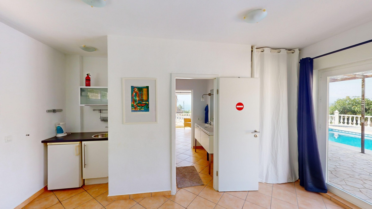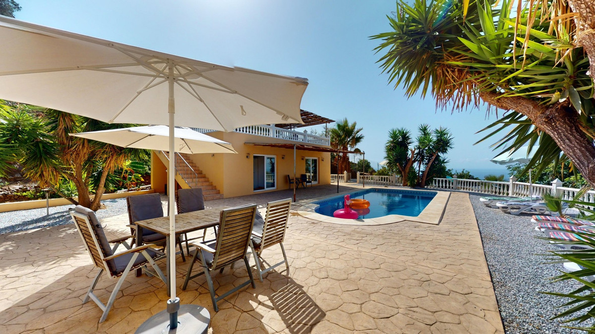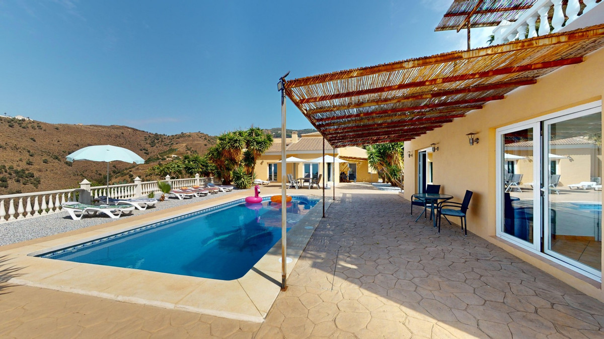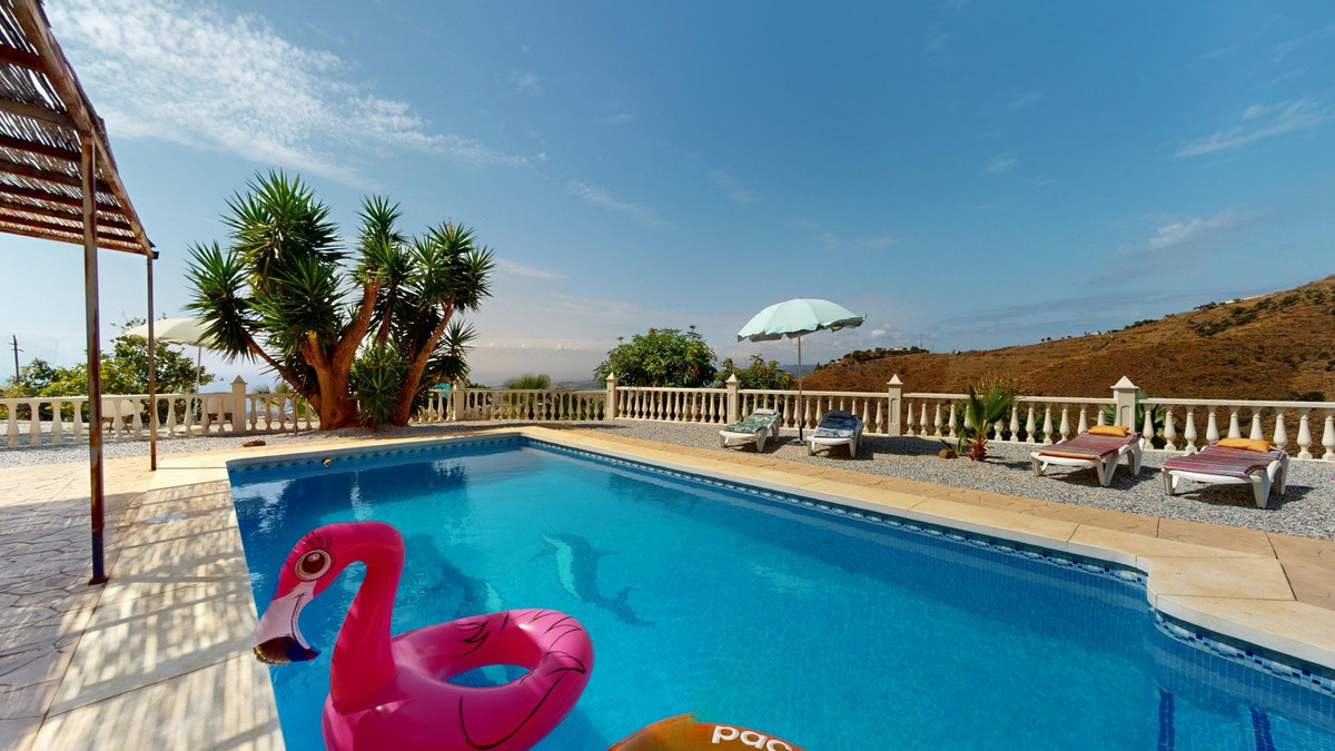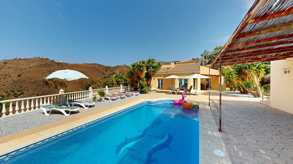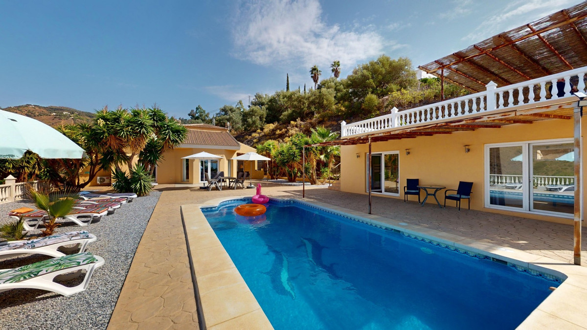 Discover the epitome of Mediterranean living with this exclusive finca in Algarrobo, located on the stunning Costa del Sol. Nestled in complete privacy, this unique property offers breathtaking panoramic views of the shimmering Mediterranean Sea and the surrounding Andalusian countryside. With a total living space of nearly 190m2 and set on a sprawling 2445m2 plot, this finca promises both luxury and tranquility. The property features five spacious bedrooms and three modern bathrooms, perfect for hosting family and guests. The heart of the home is an elegant lounge with a cozy fireplace, leading to a contemporary open-plan kitchen equipped with state-of-the-art appliances. Step outside, and youll find an inviting pool area situated between the main house and outbuildings, offering the perfect space for relaxation or entertaining while enjoying the endless views. For those with a passion for nature, the expansive grounds provide the ideal opportunity to cultivate your own tropical paradise, whether it be a mango, avocado, or orange grove just as youve seen on TV. This finca offers the perfect blend of luxury, seclusion, and Andalusian charm, while being only a short drive from the beaches of Costa del Sol and all local amenities. This is not just a property; its a lifestyle. Imagine waking up each day to the sound of the sea and the warmth of the Spanish sun. Explore the photo gallery or take a virtual 3D tour to experience the beauty and serenity of this one-of-a-kind home. If you're searching for your dream home on the sunny side of life, this finca in Algarrobo awaits. Contact us today to arrange your private viewing and make this piece of Andalusian paradise your own.