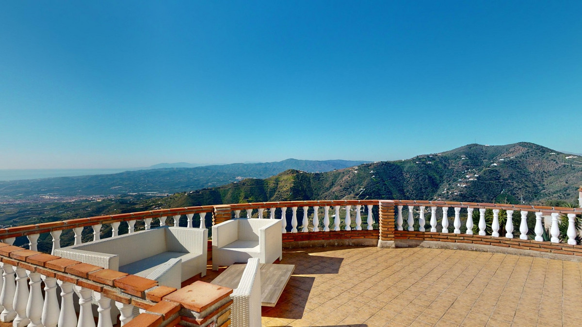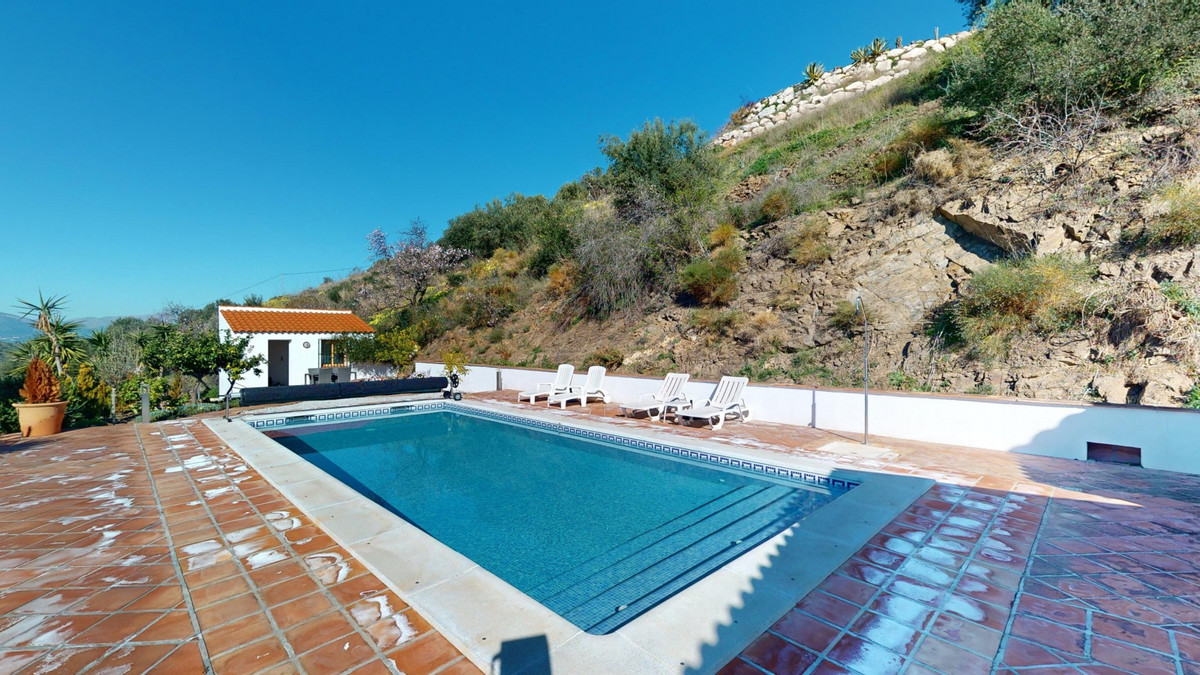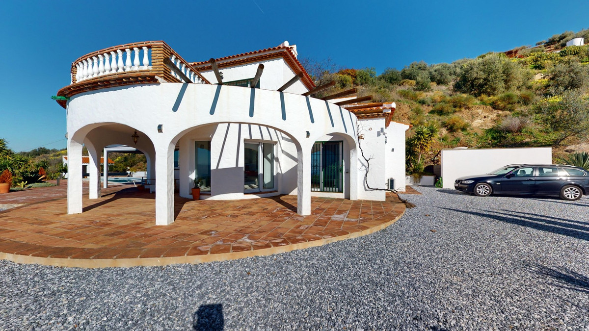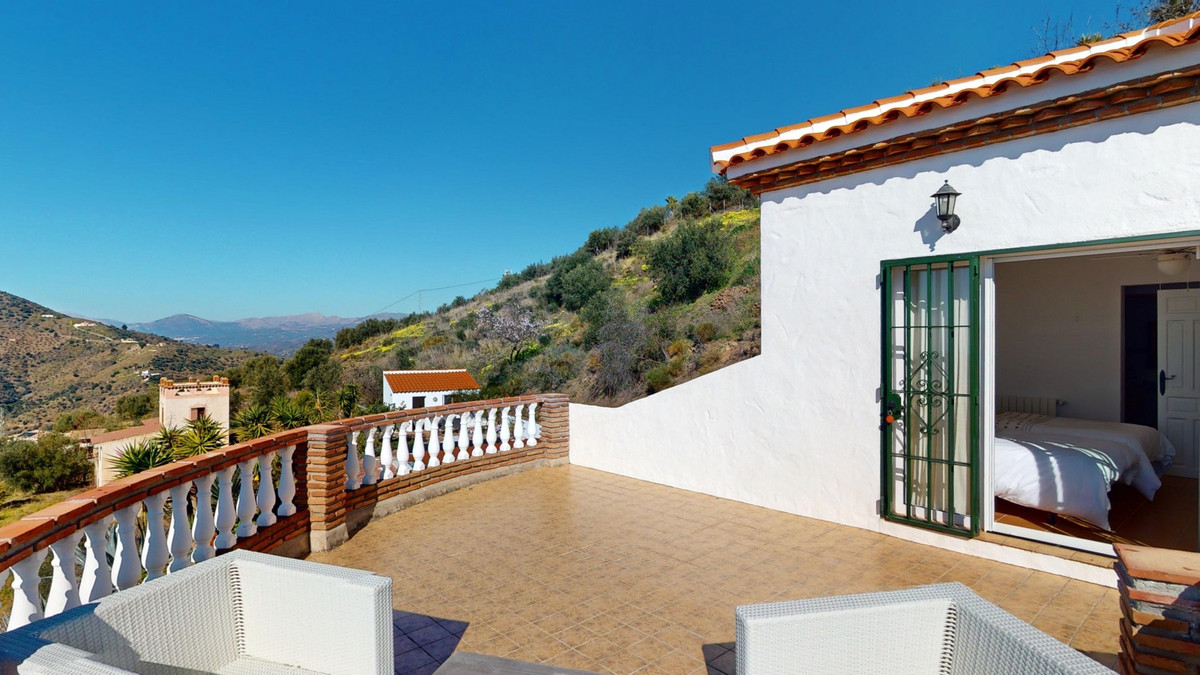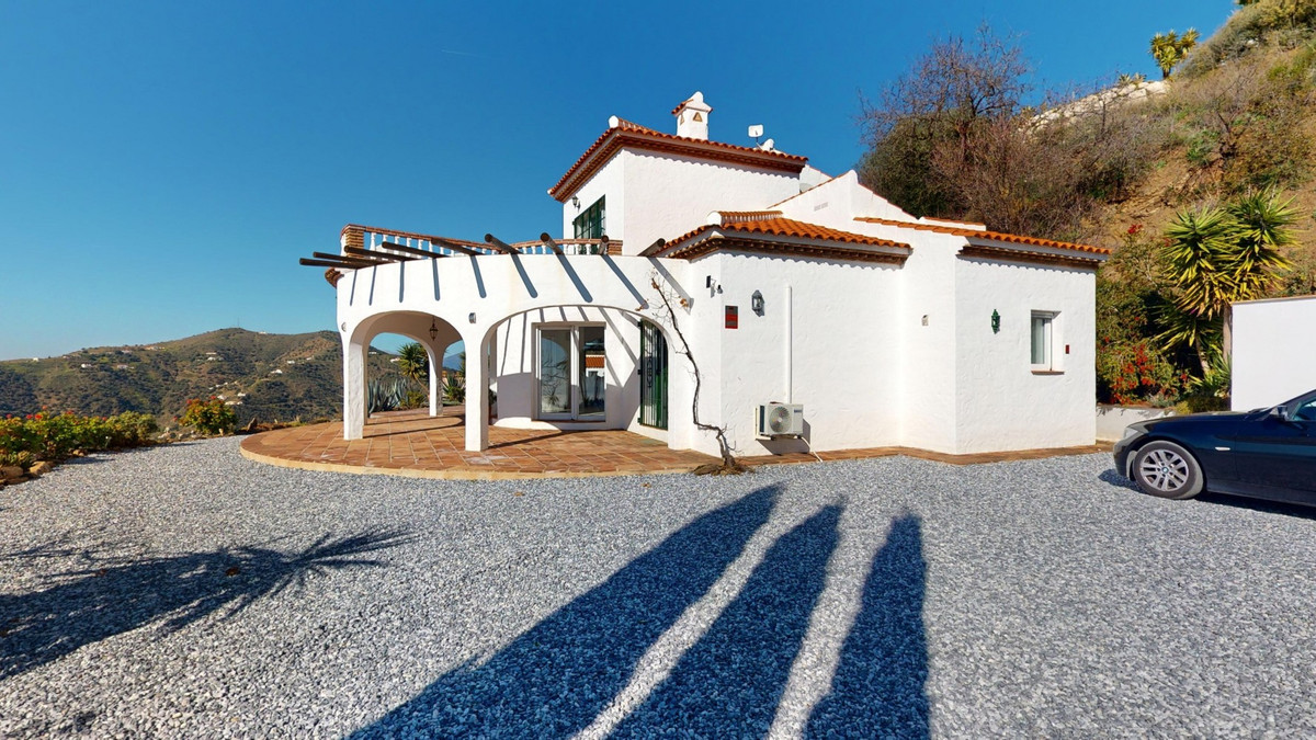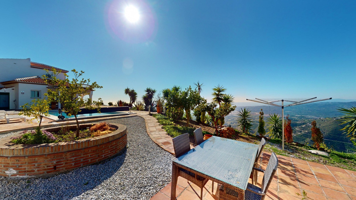 This recently renovated villa is located in a spectacular spot on Bentomiz Mountain in Arenas, just 5 minutes from the charming whitewashed village of Arenas, 20 minutes from the beaches of Algarrobo Costa, and 50 minutes from Málaga Airport, offering the perfect balance between tranquility and accessibility. The property stands out for its brightness, modern design, and high-quality finishes, featuring a spacious open-plan living room, dining area, and a fully equipped modern kitchen with top-tier appliances, including a gas cooktop, oven, dishwasher, and integrated fridge-freezer. The dining area opens onto a covered terrace, perfect for relaxing or enjoying outdoor meals. The villa boasts 3 bedrooms and 3 bathrooms, two of which are en-suite. On the ground floor, there is one bedroom with an en-suite bathroom featuring a shower, toilet, and sink, as well as air conditioning, and a second bedroom with a separate bathroom that includes a bathtub, shower, toilet, and sink. The master bedroom, located on the upper floor, features air conditioning, an en-suite bathroom with a shower, toilet, and sink, a walk-in closet, and direct access to a rooftop terrace offering breathtaking panoramic views and unforgettable sunsets. All bedrooms and the living room are equipped with ceiling fans for added comfort during the summer months. The outdoor area includes an automated saltwater heated pool measuring 9.5 meters by 5 meters and an automatic irrigation system to keep the garden in pristine condition. The property also has a shared well and a water storage tank with a 12,000-liter capacity. Several terraces with shaded areas enhance the outdoor space, one of which can be enclosed with a retractable awning. The villa is equipped with state-of-the-art technology, including 8 solar panels with a 6 kW inverter, central heating, hot water via a gas boiler, double-glazed windows and doors with anti-theft protection, a comprehensive security system with 24/7 monitoring, and a smart home system that controls lighting, the heat pump, solar panels, and water tank levels. This property seamlessly blends comfort, style, and sustainability in a privileged setting. Contact us today for more information or to schedule a viewing, either in person or virtually.
