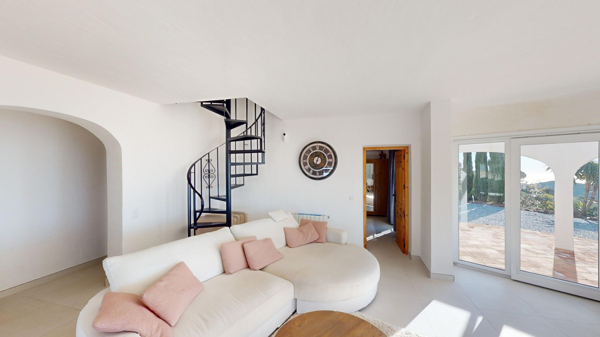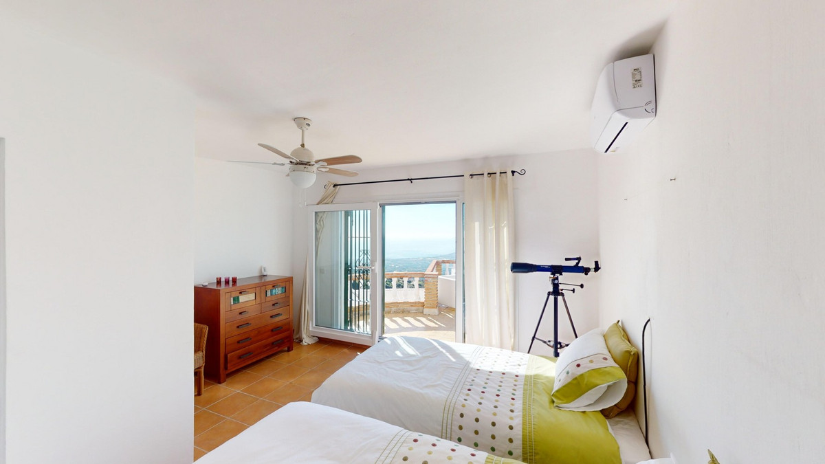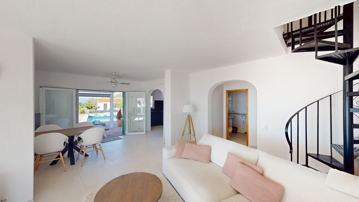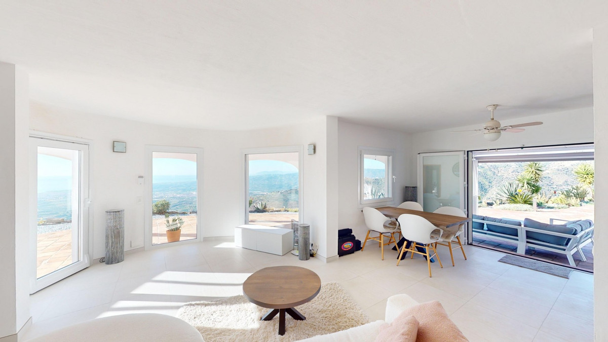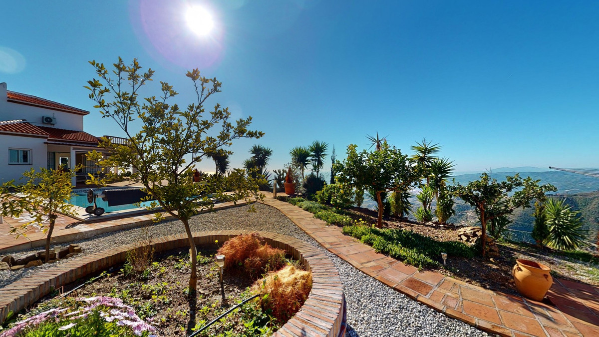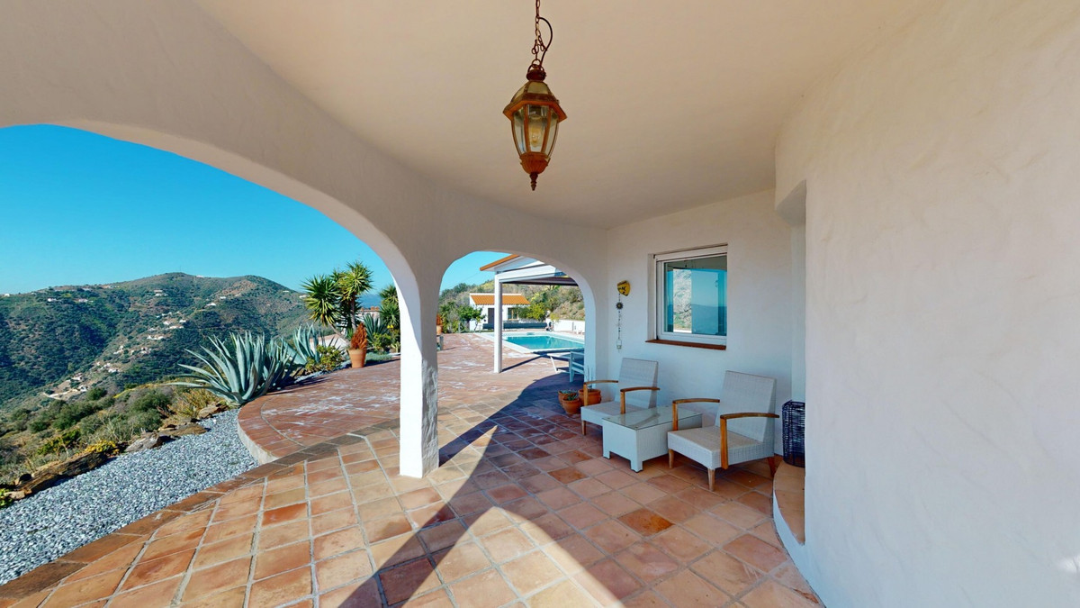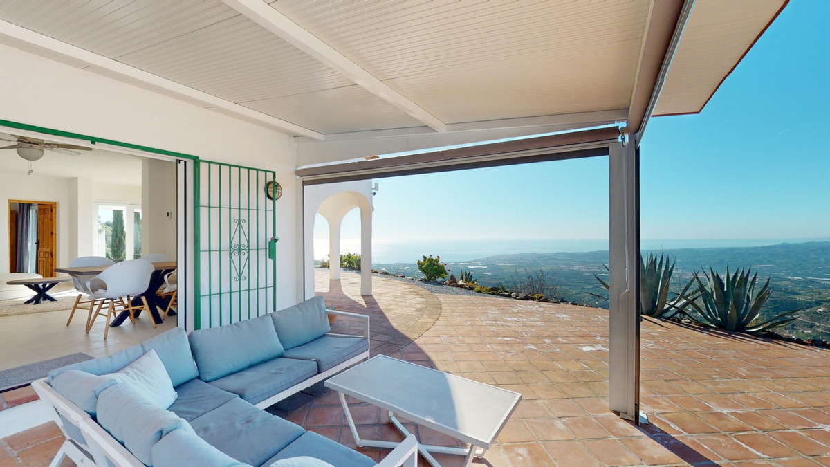 This recently renovated villa is located in a spectacular spot on Bentomiz Mountain in Arenas, just 5 minutes from the charming whitewashed village of Arenas, 20 minutes from the beaches of Algarrobo Costa, and 50 minutes from Málaga Airport, offering the perfect balance between tranquility and accessibility. The property stands out for its brightness, modern design, and high-quality finishes, featuring a spacious open-plan living room, dining area, and a fully equipped modern kitchen with top-tier appliances, including a gas cooktop, oven, dishwasher, and integrated fridge-freezer. The dining area opens onto a covered terrace, perfect for relaxing or enjoying outdoor meals. The villa boasts 3 bedrooms and 3 bathrooms, two of which are en-suite. On the ground floor, there is one bedroom with an en-suite bathroom featuring a shower, toilet, and sink, as well as air conditioning, and a second bedroom with a separate bathroom that includes a bathtub, shower, toilet, and sink. The master bedroom, located on the upper floor, features air conditioning, an en-suite bathroom with a shower, toilet, and sink, a walk-in closet, and direct access to a rooftop terrace offering breathtaking panoramic views and unforgettable sunsets. All bedrooms and the living room are equipped with ceiling fans for added comfort during the summer months. The outdoor area includes an automated saltwater heated pool measuring 9.5 meters by 5 meters and an automatic irrigation system to keep the garden in pristine condition. The property also has a shared well and a water storage tank with a 12,000-liter capacity. Several terraces with shaded areas enhance the outdoor space, one of which can be enclosed with a retractable awning. The villa is equipped with state-of-the-art technology, including 8 solar panels with a 6 kW inverter, central heating, hot water via a gas boiler, double-glazed windows and doors with anti-theft protection, a comprehensive security system with 24/7 monitoring, and a smart home system that controls lighting, the heat pump, solar panels, and water tank levels. This property seamlessly blends comfort, style, and sustainability in a privileged setting. Contact us today for more information or to schedule a viewing, either in person or virtually.