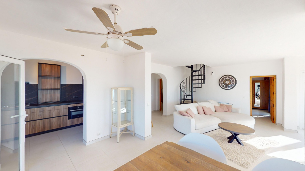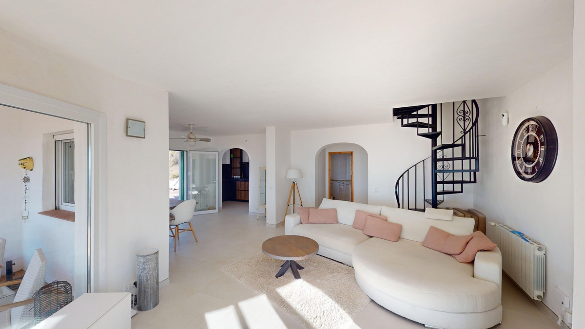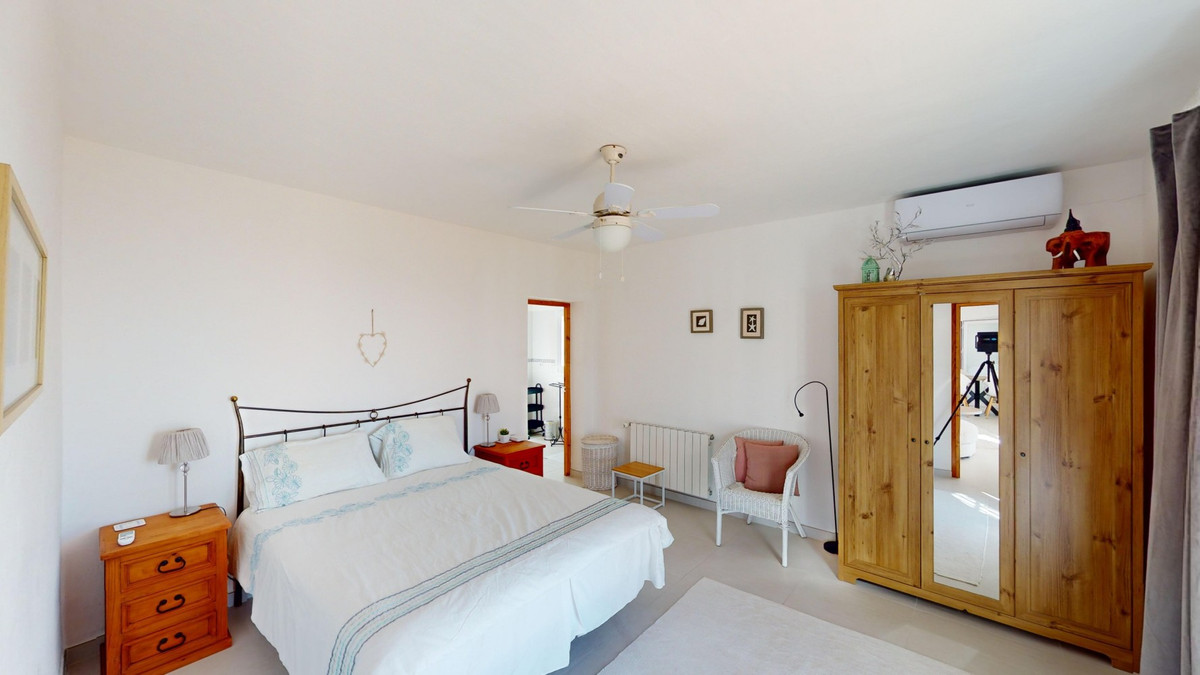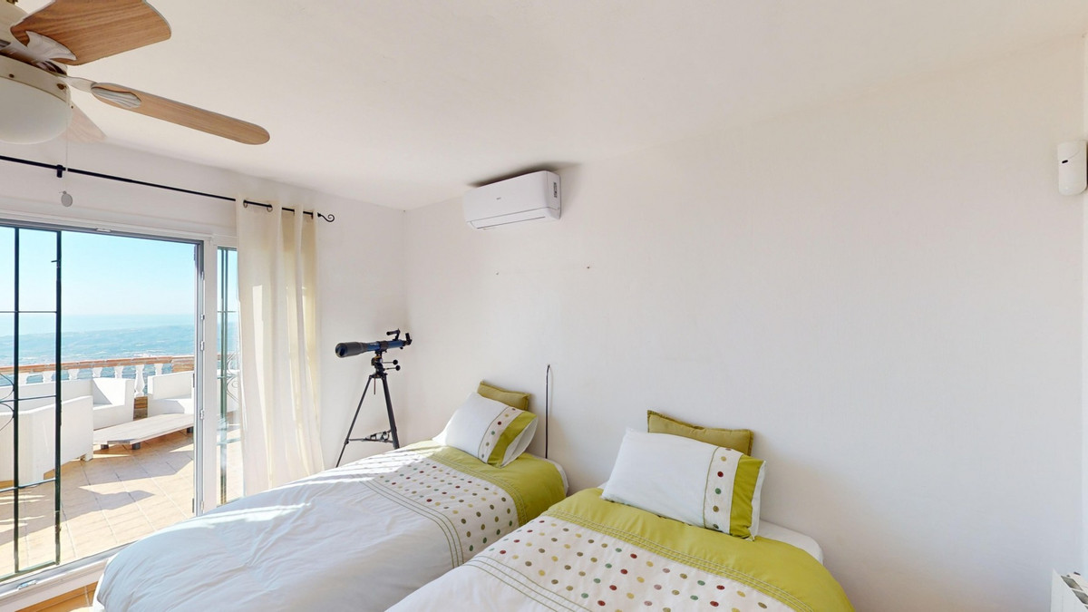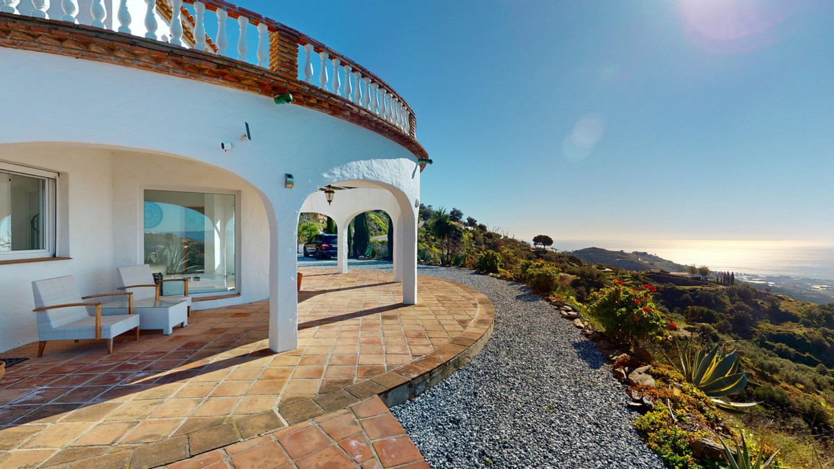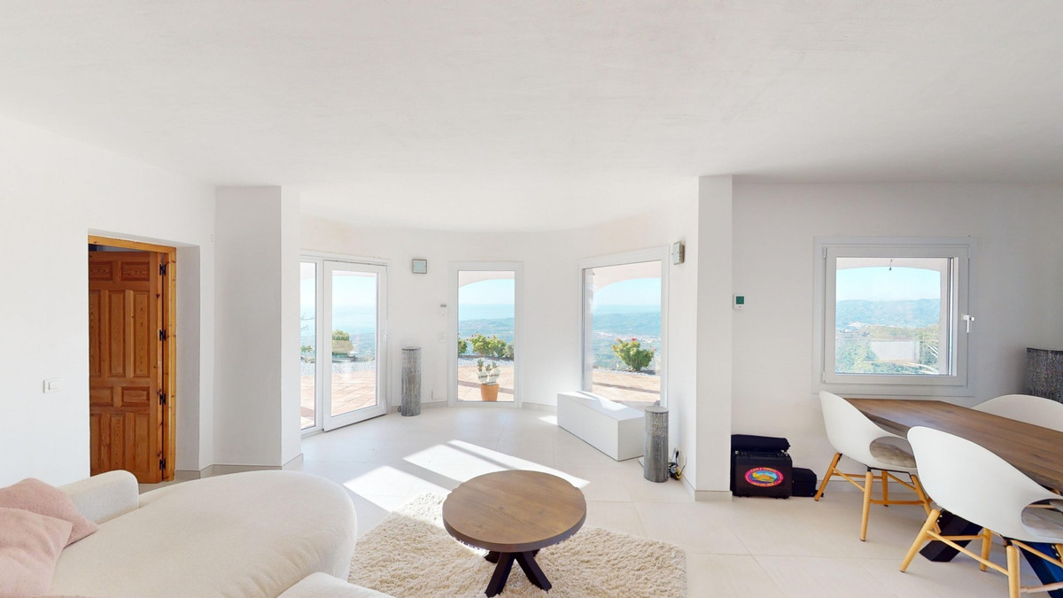 This recently renovated villa is located in a spectacular spot on Bentomiz Mountain in Arenas, just 5 minutes from the charming whitewashed village of Arenas, 20 minutes from the beaches of Algarrobo Costa, and 50 minutes from Málaga Airport, offering the perfect balance between tranquility and accessibility. The property stands out for its brightness, modern design, and high-quality finishes, featuring a spacious open-plan living room, dining area, and a fully equipped modern kitchen with top-tier appliances, including a gas cooktop, oven, dishwasher, and integrated fridge-freezer. The dining area opens onto a covered terrace, perfect for relaxing or enjoying outdoor meals. The villa boasts 3 bedrooms and 3 bathrooms, two of which are en-suite. On the ground floor, there is one bedroom with an en-suite bathroom featuring a shower, toilet, and sink, as well as air conditioning, and a second bedroom with a separate bathroom that includes a bathtub, shower, toilet, and sink. The master bedroom, located on the upper floor, features air conditioning, an en-suite bathroom with a shower, toilet, and sink, a walk-in closet, and direct access to a rooftop terrace offering breathtaking panoramic views and unforgettable sunsets. All bedrooms and the living room are equipped with ceiling fans for added comfort during the summer months. The outdoor area includes an automated saltwater heated pool measuring 9.5 meters by 5 meters and an automatic irrigation system to keep the garden in pristine condition. The property also has a shared well and a water storage tank with a 12,000-liter capacity. Several terraces with shaded areas enhance the outdoor space, one of which can be enclosed with a retractable awning. The villa is equipped with state-of-the-art technology, including 8 solar panels with a 6 kW inverter, central heating, hot water via a gas boiler, double-glazed windows and doors with anti-theft protection, a comprehensive security system with 24/7 monitoring, and a smart home system that controls lighting, the heat pump, solar panels, and water tank levels. This property seamlessly blends comfort, style, and sustainability in a privileged setting. Contact us today for more information or to schedule a viewing, either in person or virtually.