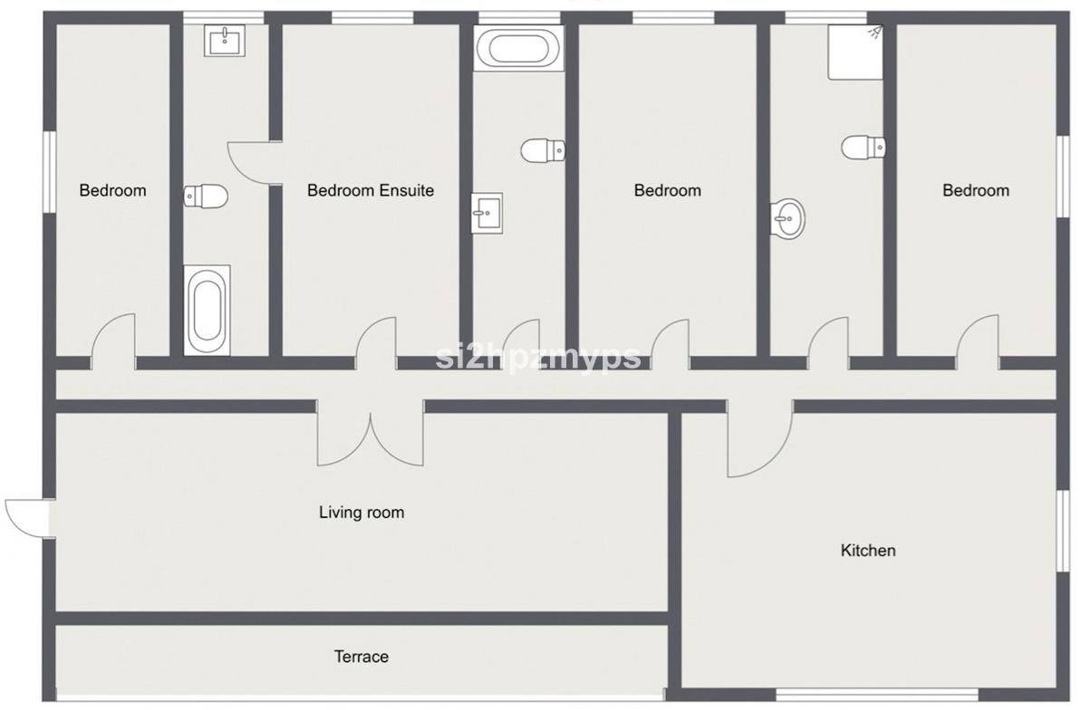 The main house consists of 4 bedrooms, of which one is an ensuite, a total of 3 bathrooms, a large kitchen with dining area, living room, two large terraces and a large laundry room.