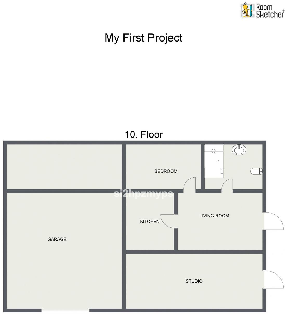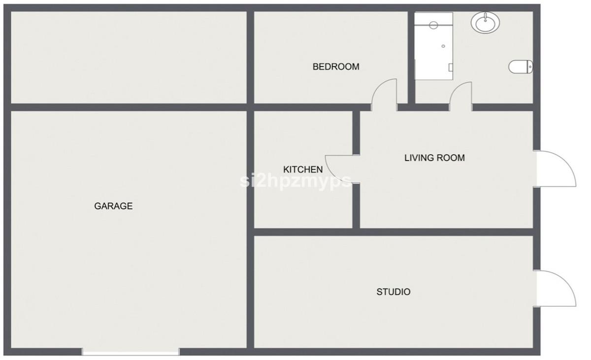 Here you will find a large garage with room for two cars, a studio with shower and toilet and a kitchen. Right next to the studio is another separate apartment with one bedroom, bathroom and a kitchen. Via the garage, a staircase leads up to the upper floor and the main house, which can also be reached from the main entrance on the other side of the house.