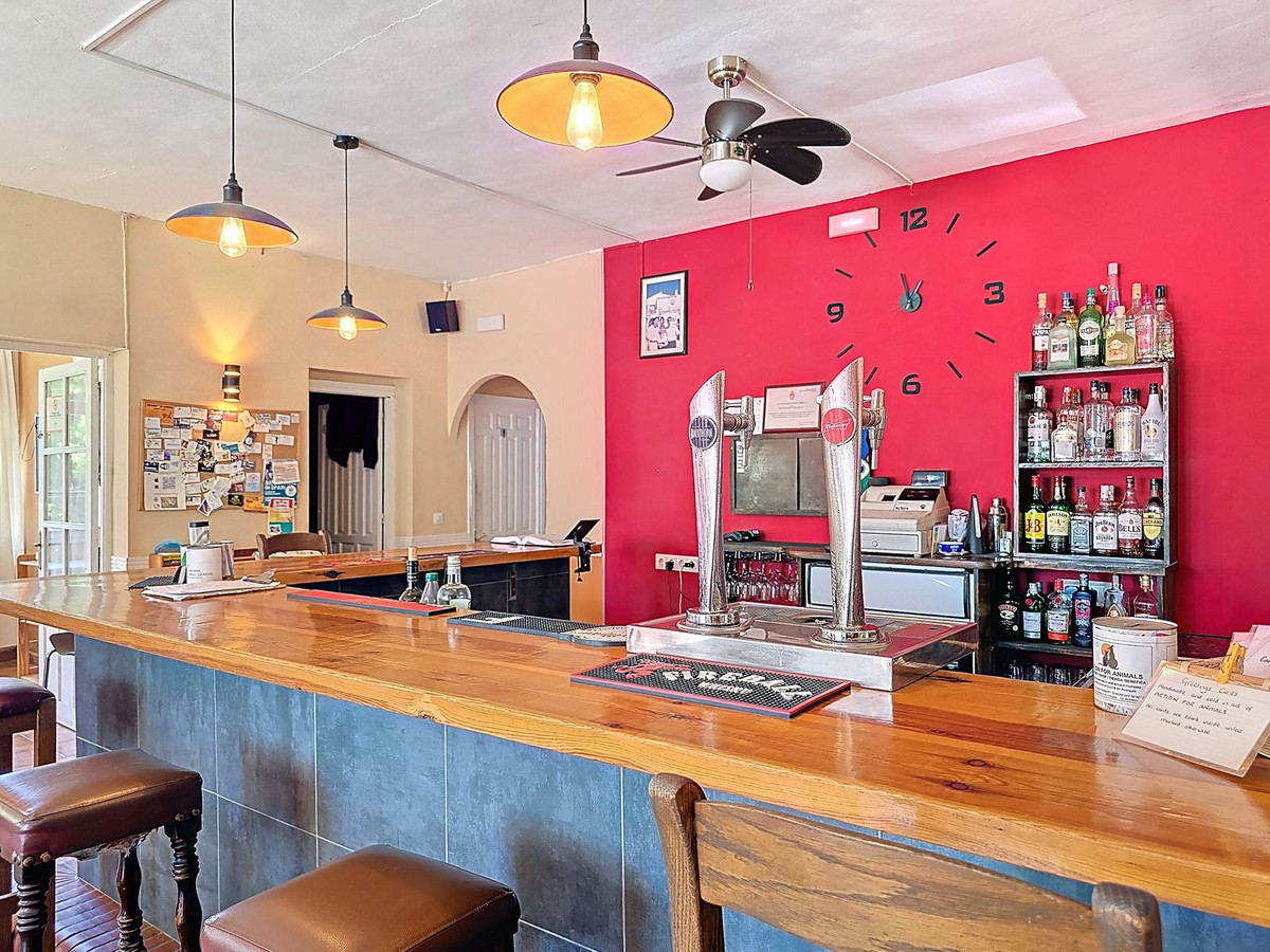 The ground floor is dedicated to the business premises and includes a large, partially shaded front terrace with ample space for client seating—ideal for outdoor dining in a relaxed setting. Inside, the bar area features a welcoming dining space, pool table, and a cosy open fireplace. A separate private dining room is perfect for group bookings or special events.