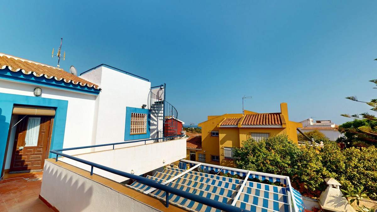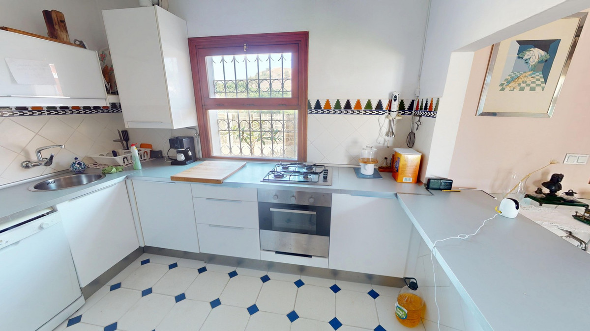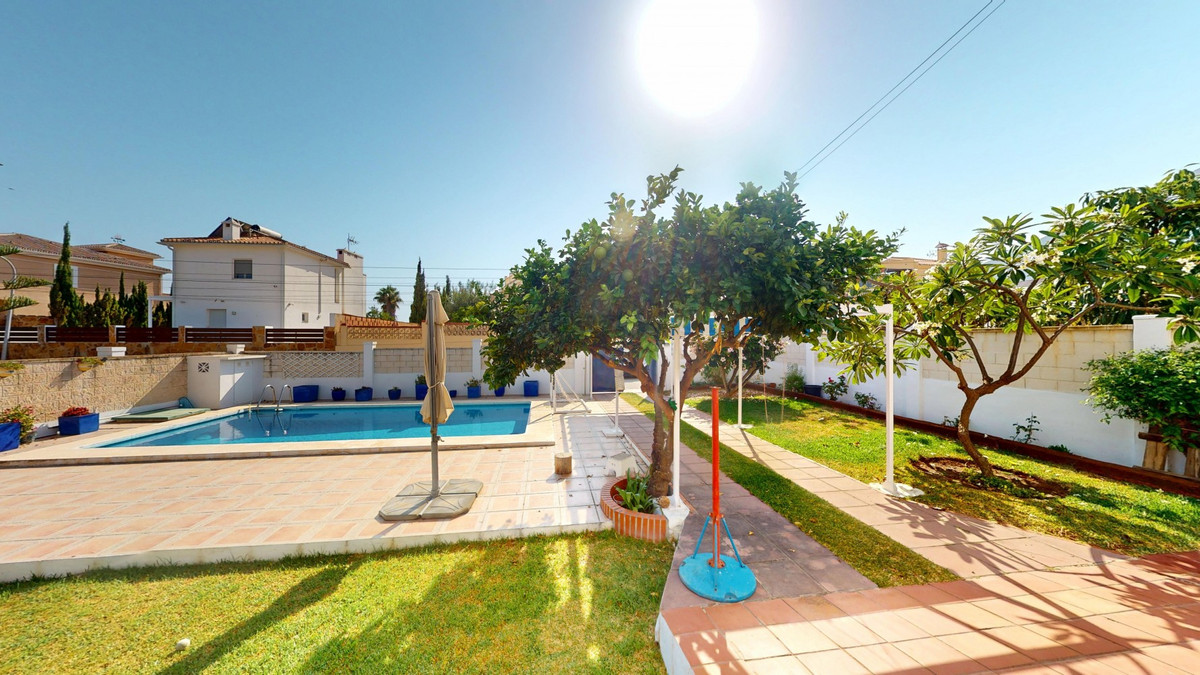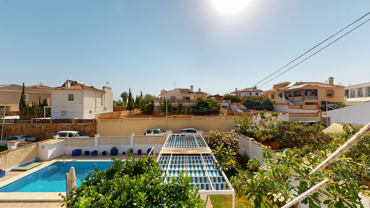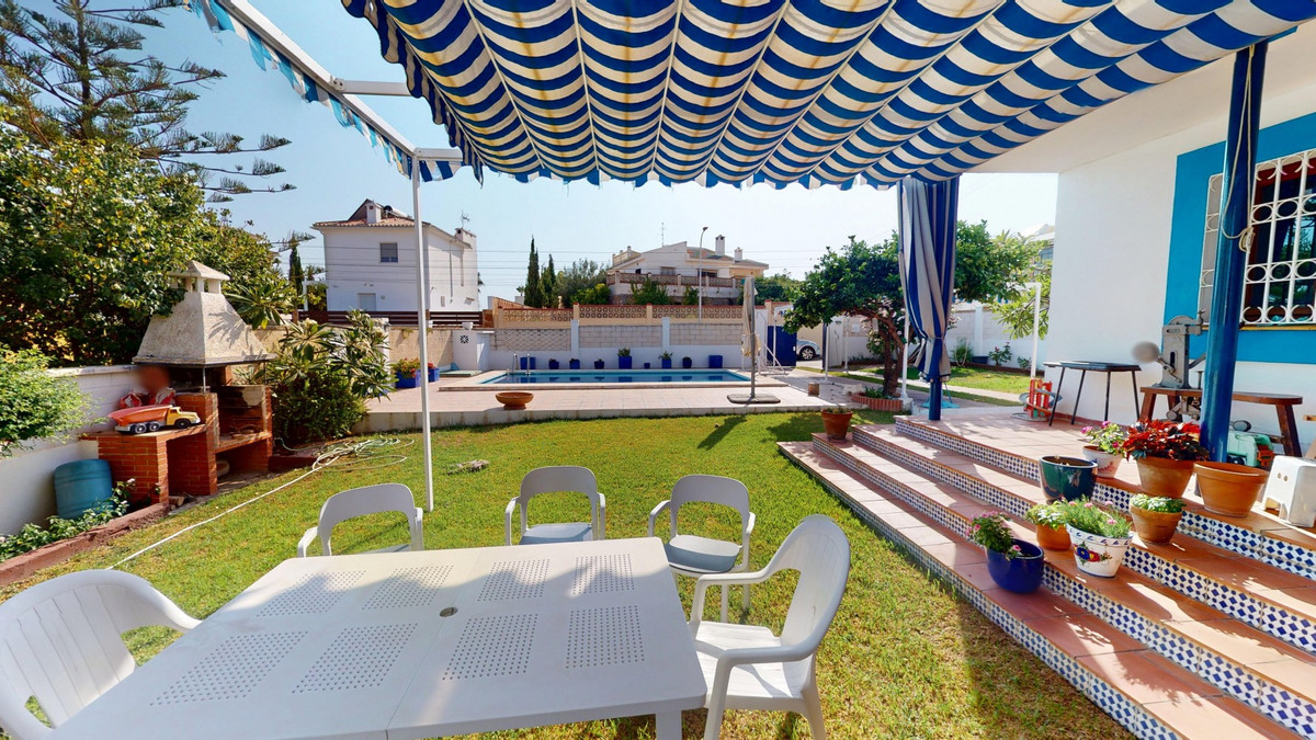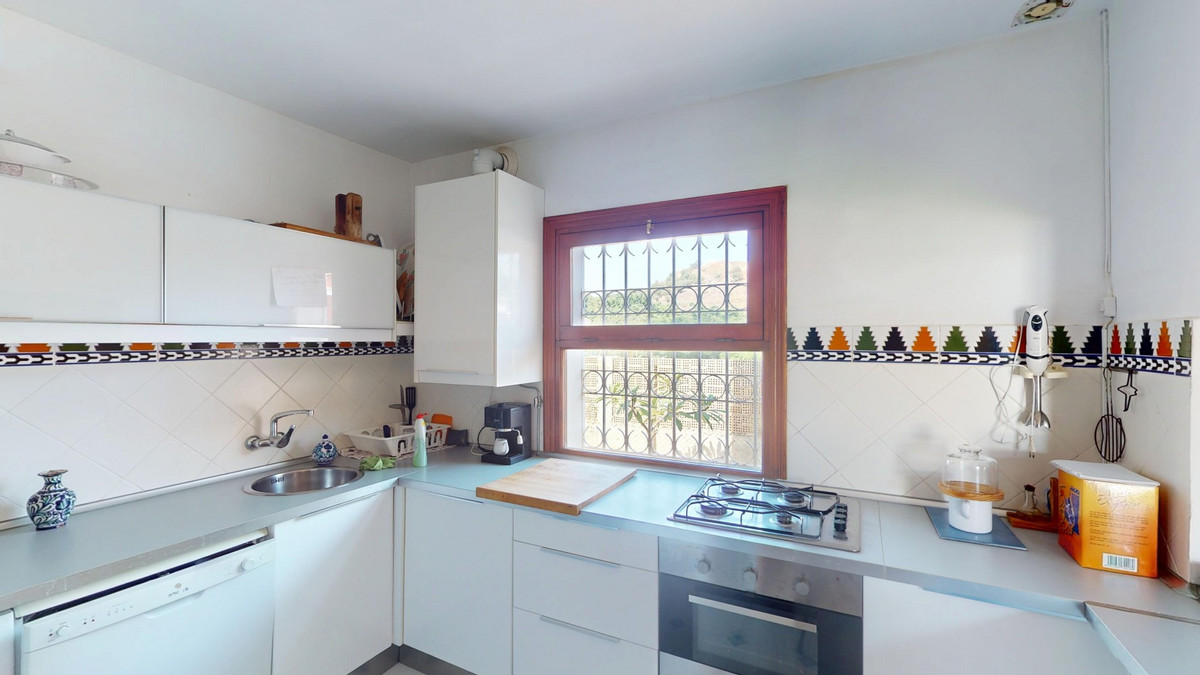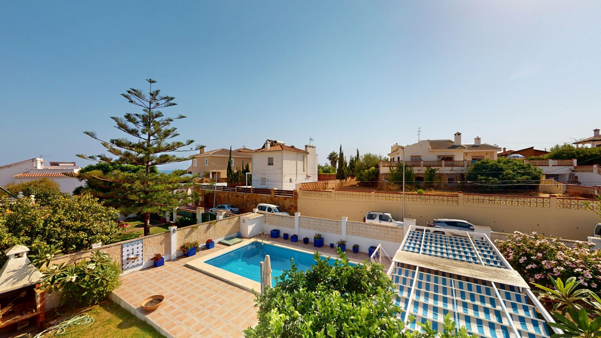 This beautiful Spanish villa spans two floors and features three bedrooms, including an impressive primary suite, and two bathrooms, blending traditional Andalusian charm with modern comfort. The Mediterranean-inspired design is reflected in the terracotta tile floors, warm wooden accents, and bright, airy spaces. The living area boasts a unique split-level layout with decorative tile borders, a cozy fireplace, and built-in shelving. A stylish wooden staircase leads to the upper floor, while the open-plan kitchen connects seamlessly to the living areaperfect for family living or entertaining guests. The bedrooms are spacious and include built-in wardrobes for optimal storage. Large windows with traditional wooden shutters allow natural light to flood in and offer picturesque views of the surroundings. The bathrooms are full of character, one featuring a blue-and-white checkered floor with decorative tile borders. Outside, the villa offers a private garden with a pool, a chill-out area perfect for relaxing, a garage, and a rooftop terrace with stunning viewsideal for enjoying the Costa del Sols climate and scenery. Located in Chilches, this property is perfect as a permanent home, holiday retreat, or rental investment. We are pleased to be able to present this dream property to you soon, either personally or via virtual viewing. Because this world is unique - just like our Axarquía. In Andalusia. On the Costa del Sol. Here, on the sunny side of life...