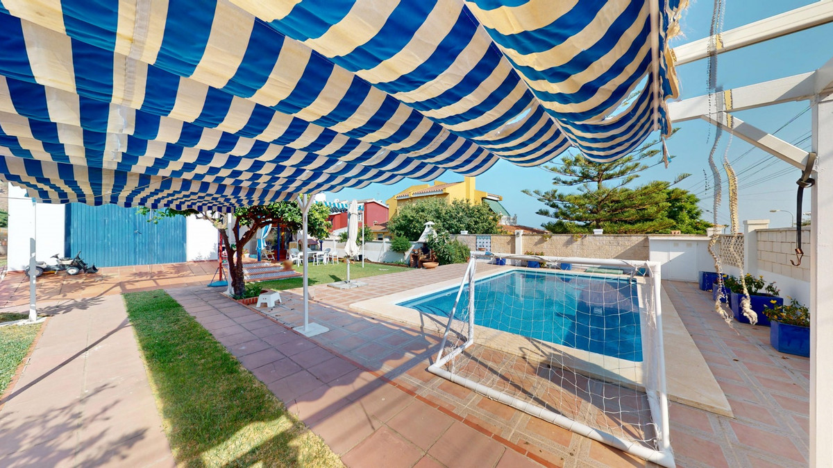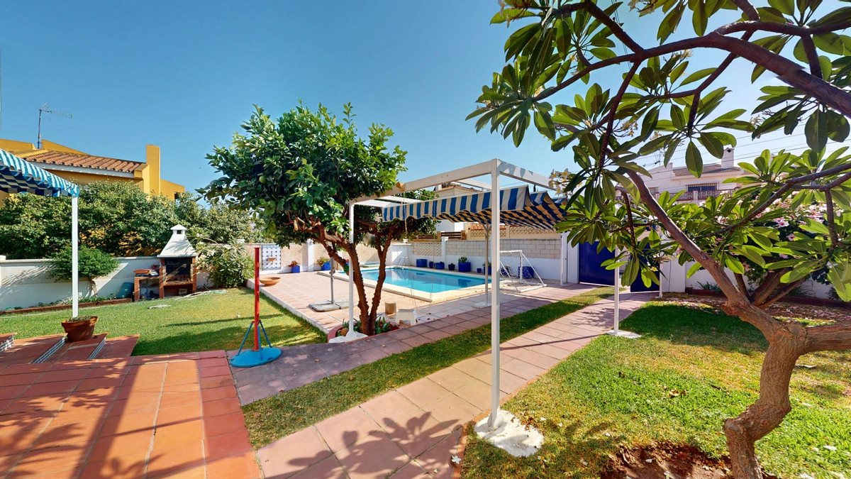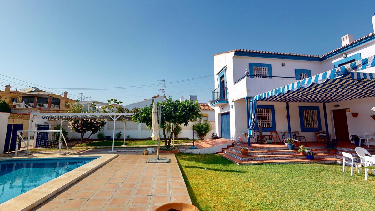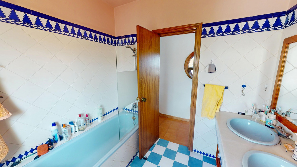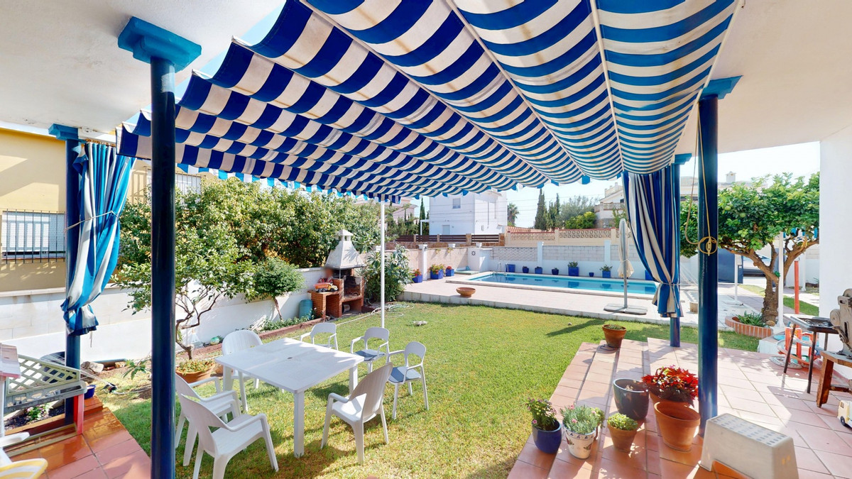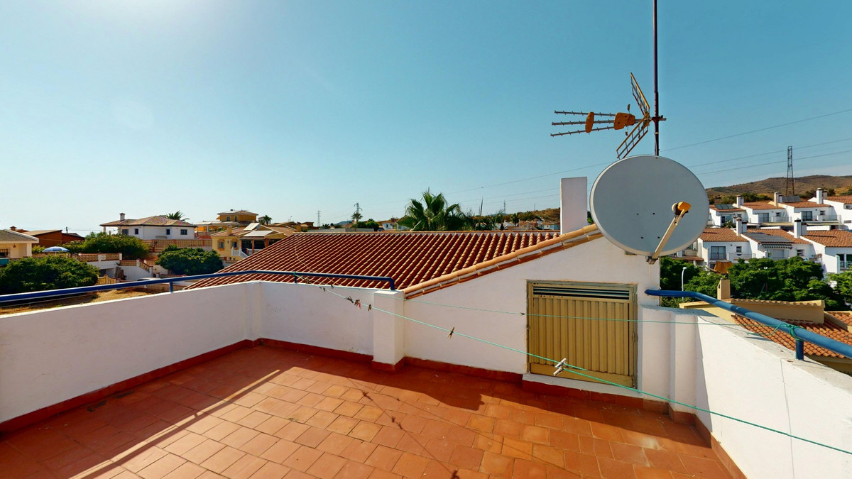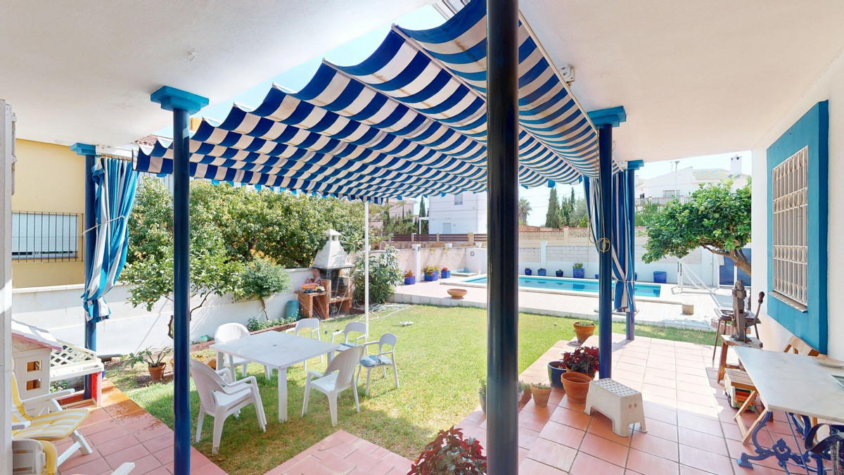 This beautiful Spanish villa spans two floors and features three bedrooms, including an impressive primary suite, and two bathrooms, blending traditional Andalusian charm with modern comfort. The Mediterranean-inspired design is reflected in the terracotta tile floors, warm wooden accents, and bright, airy spaces. The living area boasts a unique split-level layout with decorative tile borders, a cozy fireplace, and built-in shelving. A stylish wooden staircase leads to the upper floor, while the open-plan kitchen connects seamlessly to the living areaperfect for family living or entertaining guests. The bedrooms are spacious and include built-in wardrobes for optimal storage. Large windows with traditional wooden shutters allow natural light to flood in and offer picturesque views of the surroundings. The bathrooms are full of character, one featuring a blue-and-white checkered floor with decorative tile borders. Outside, the villa offers a private garden with a pool, a chill-out area perfect for relaxing, a garage, and a rooftop terrace with stunning viewsideal for enjoying the Costa del Sols climate and scenery. Located in Chilches, this property is perfect as a permanent home, holiday retreat, or rental investment. We are pleased to be able to present this dream property to you soon, either personally or via virtual viewing. Because this world is unique - just like our Axarquía. In Andalusia. On the Costa del Sol. Here, on the sunny side of life...